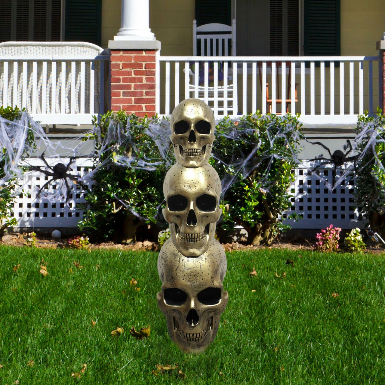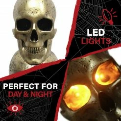 - Golden Skull Stack prelit resin statue for home or porch decor