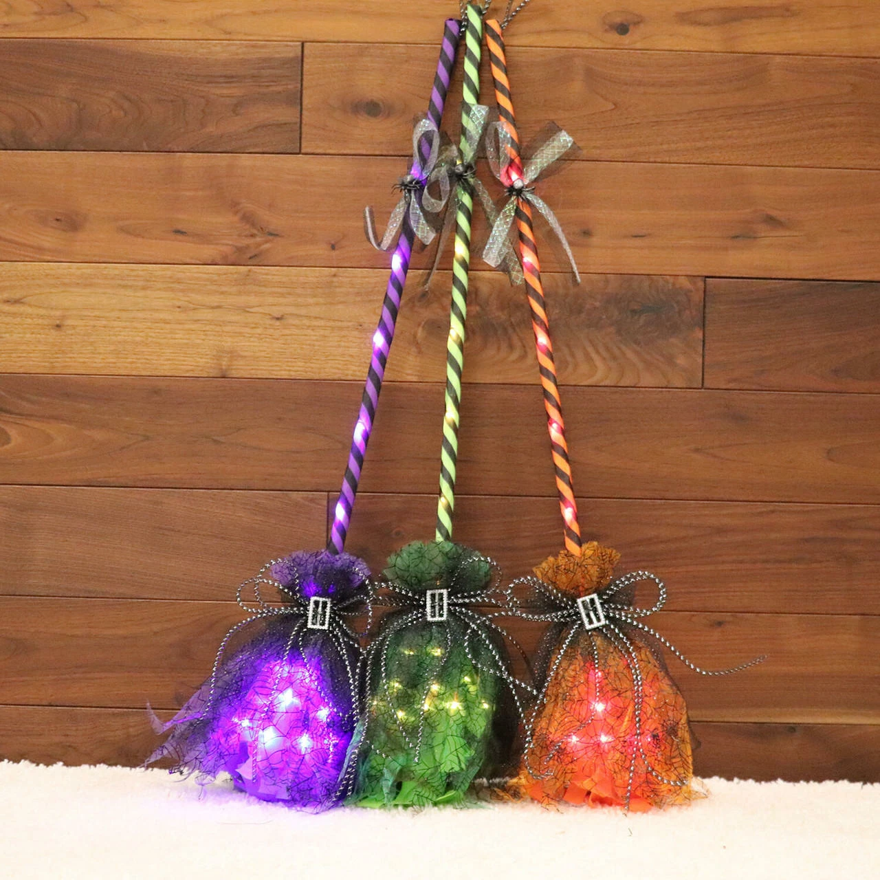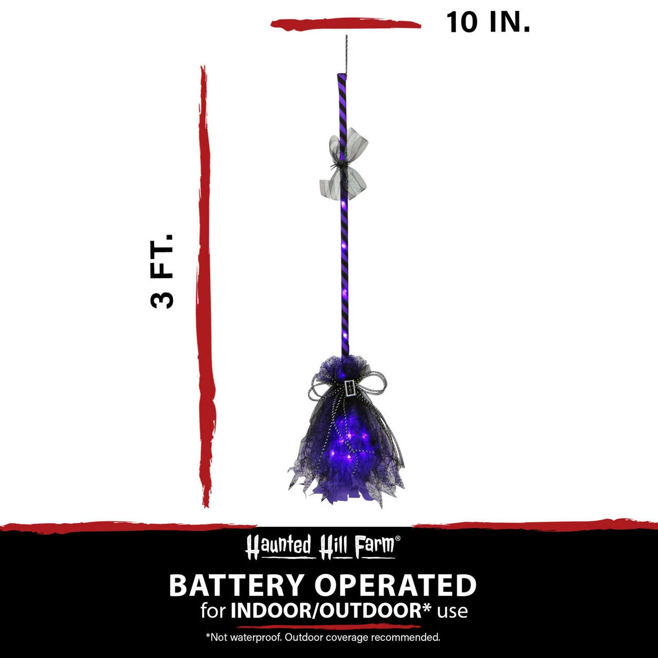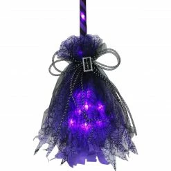 - 3-ft. purple witch’s broomstick with purple lights and battery operated