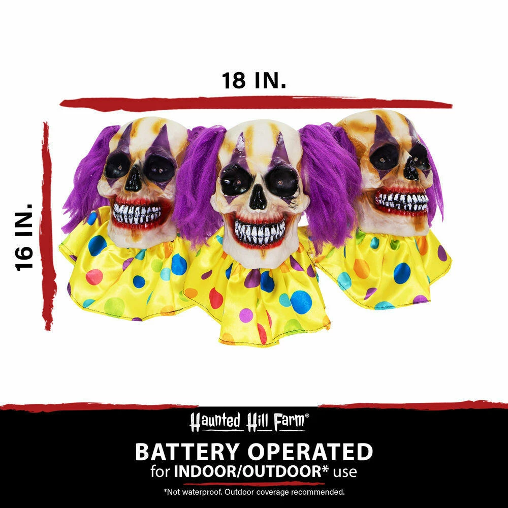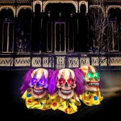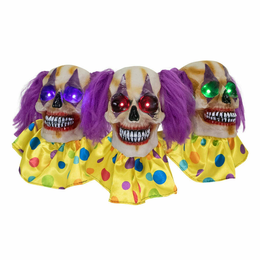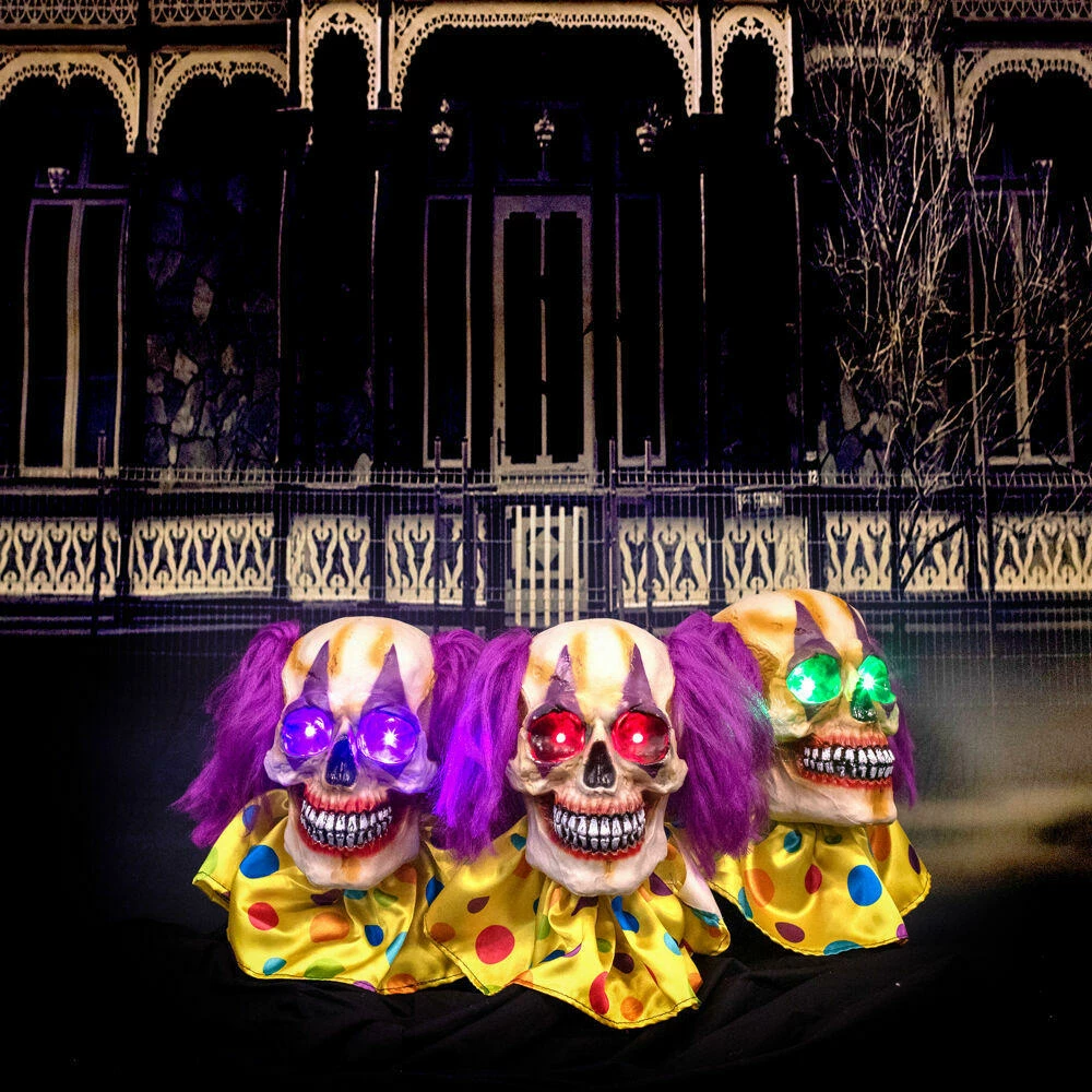 - Connected 3-piece clown skull lawn stakes come to life to step up your Halloween display