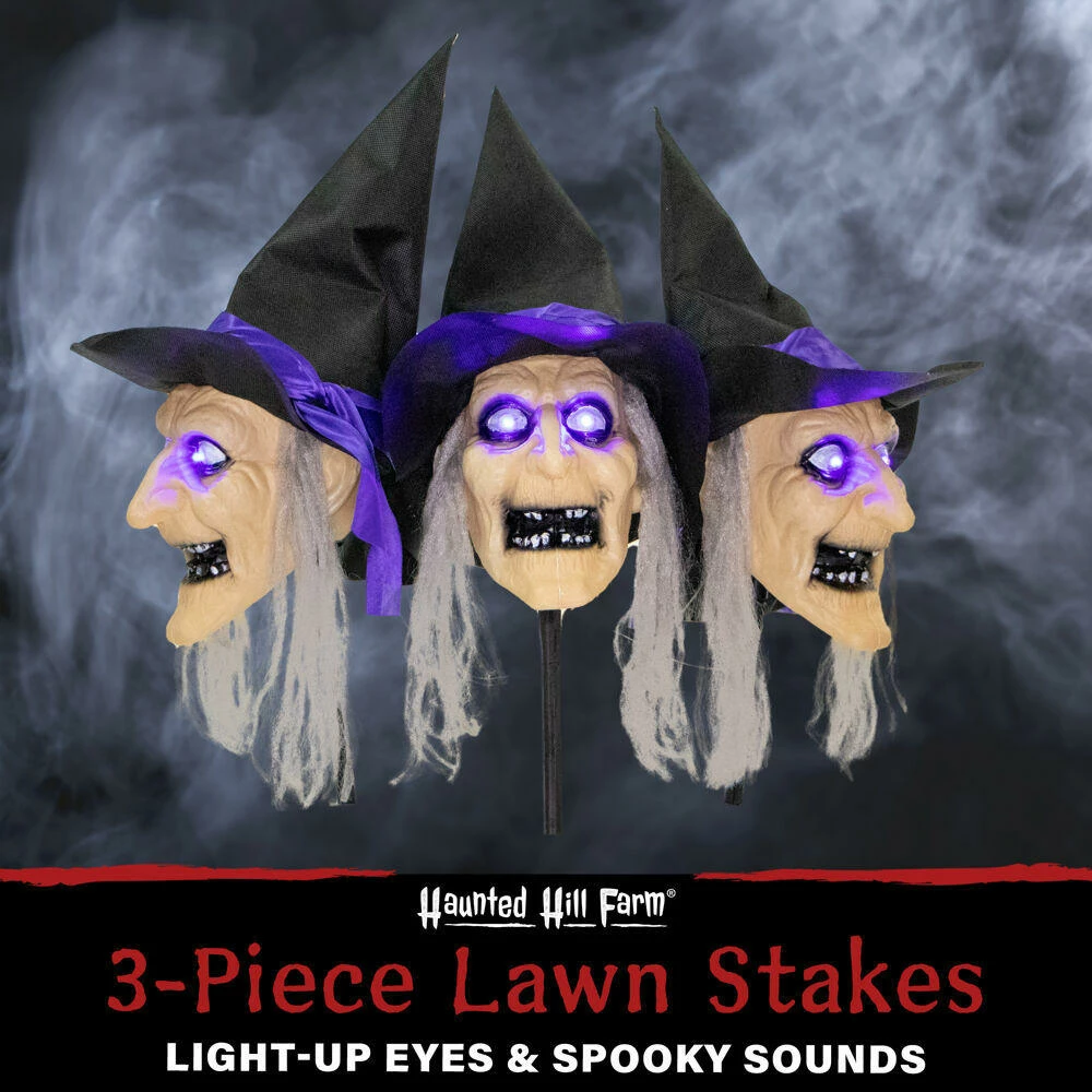 - Connected 3-piece witch lawn stakes come to life to step up your Halloween display