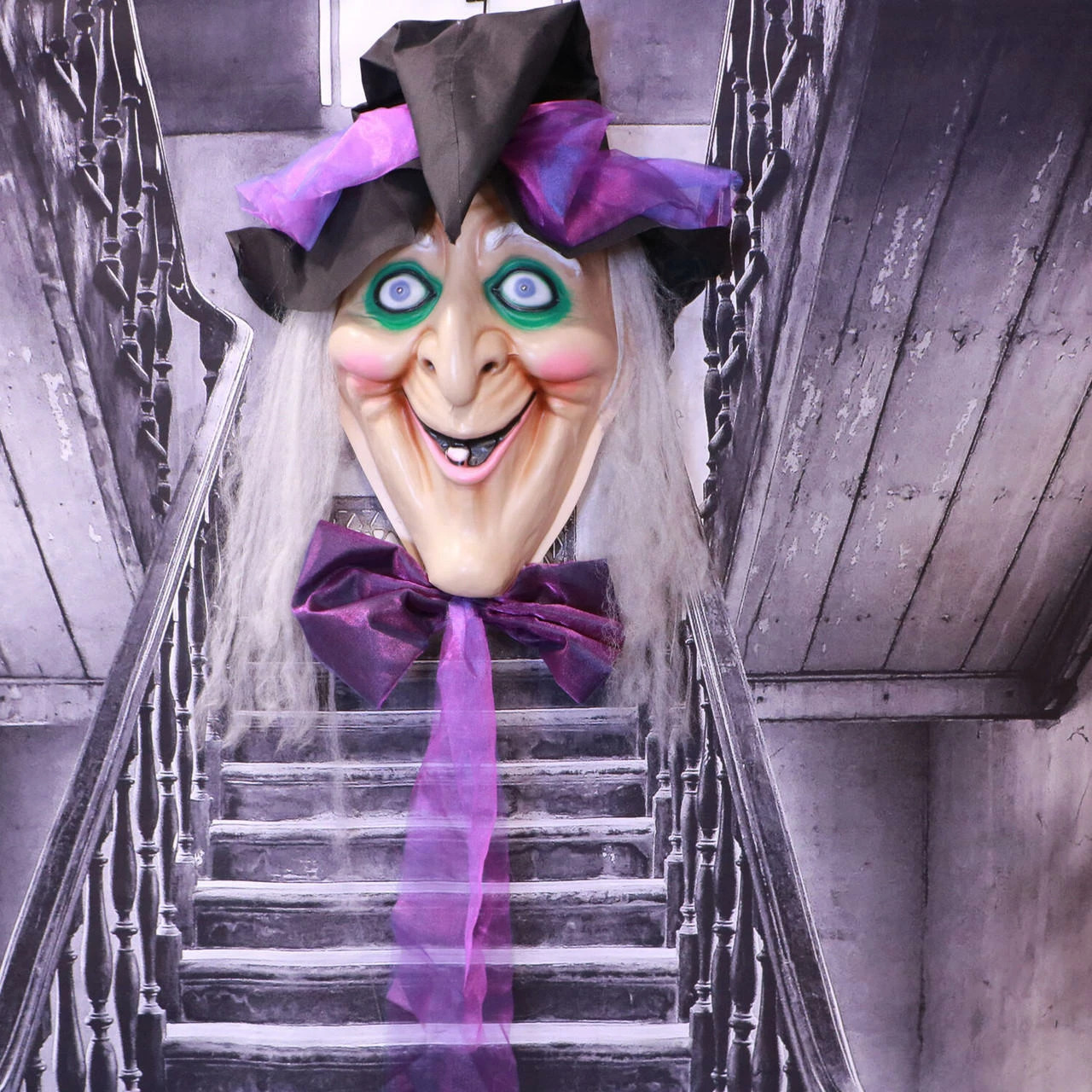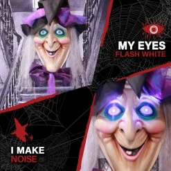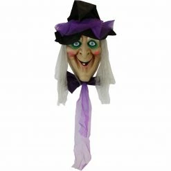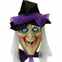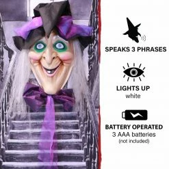 - 4.2-ft animatronic witch head Halloween decorations for indoor/covered outdoor