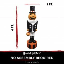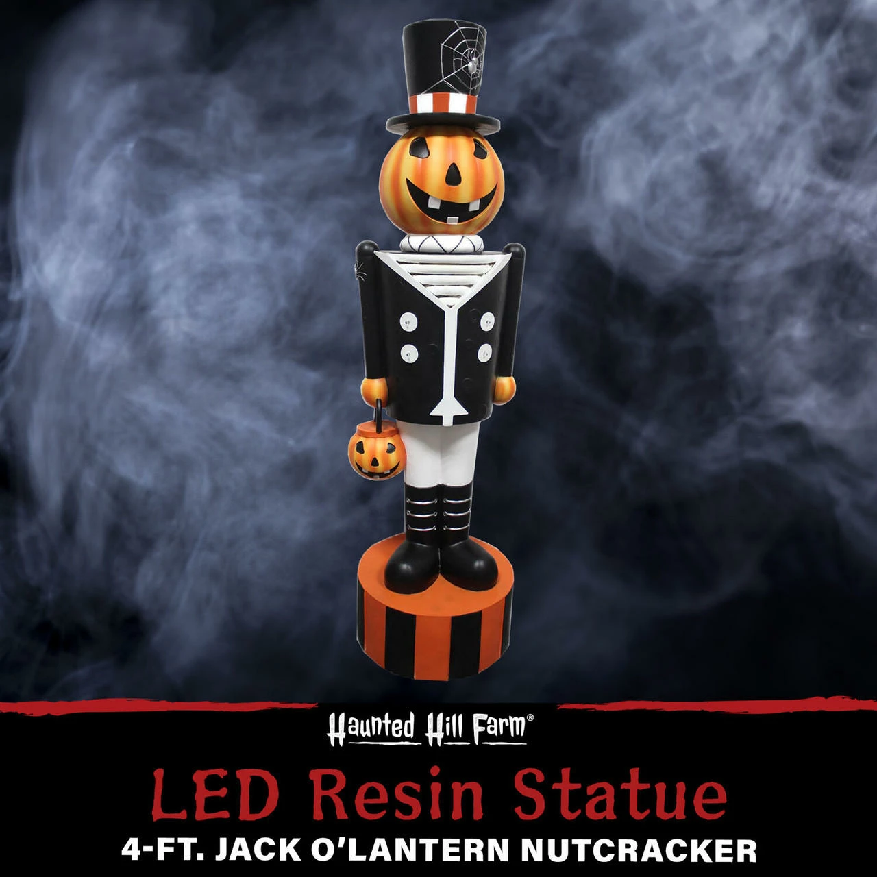 Add a little whimsy to your holiday decor with our Resin Halloween Decorations by Haunted Hill Farm. Standing 4 feet tall, our Jack-O-Lantern Nutcracker is perfect for indoor or covered outdoor use. LED lights cast an eerie glow to set the perfect festive mood and delight your trick-or-treaters. Buy two to flank a door or a wide stairway. Use alone or combine with our large variety of seasonal decorations to create a spooktacular display. Count on quality products from Haunted Hill Farm for lots of spooky fun this Halloween season.