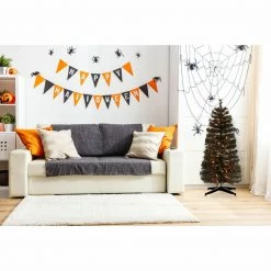 Add a little extra spook to your Halloween with this haunted 3-ft. black tinsel tree from Haunted Hill Farm. This ghostly tree will make an eerie statement in any room it’s placed in from the moment you unbox it. Black tinsel needles populate each branch and reflect light from every angle. Warm white LED lights are evenly distributed throughout the tree and provide extra light to the frightening display. Metal-hinged branches make it easy to unfold each tier and begin fluffing. These metal branches are extra-durable and designed for many years of bending and folding in and out of storage. A matching metal tree stand is included to secure the tree upright. This tree can excellently fit on your porch, in your haunted house, or yard. Our Haunted Hill Farm tinsel tree is the final nail in the coffin for your decor this Halloween!
