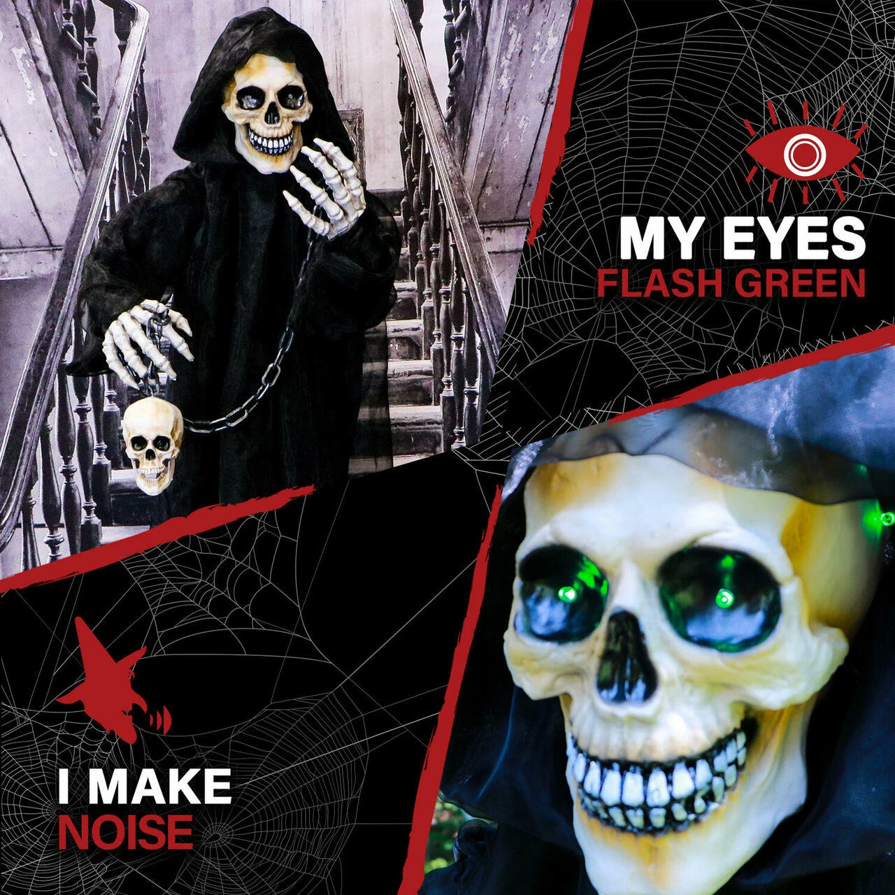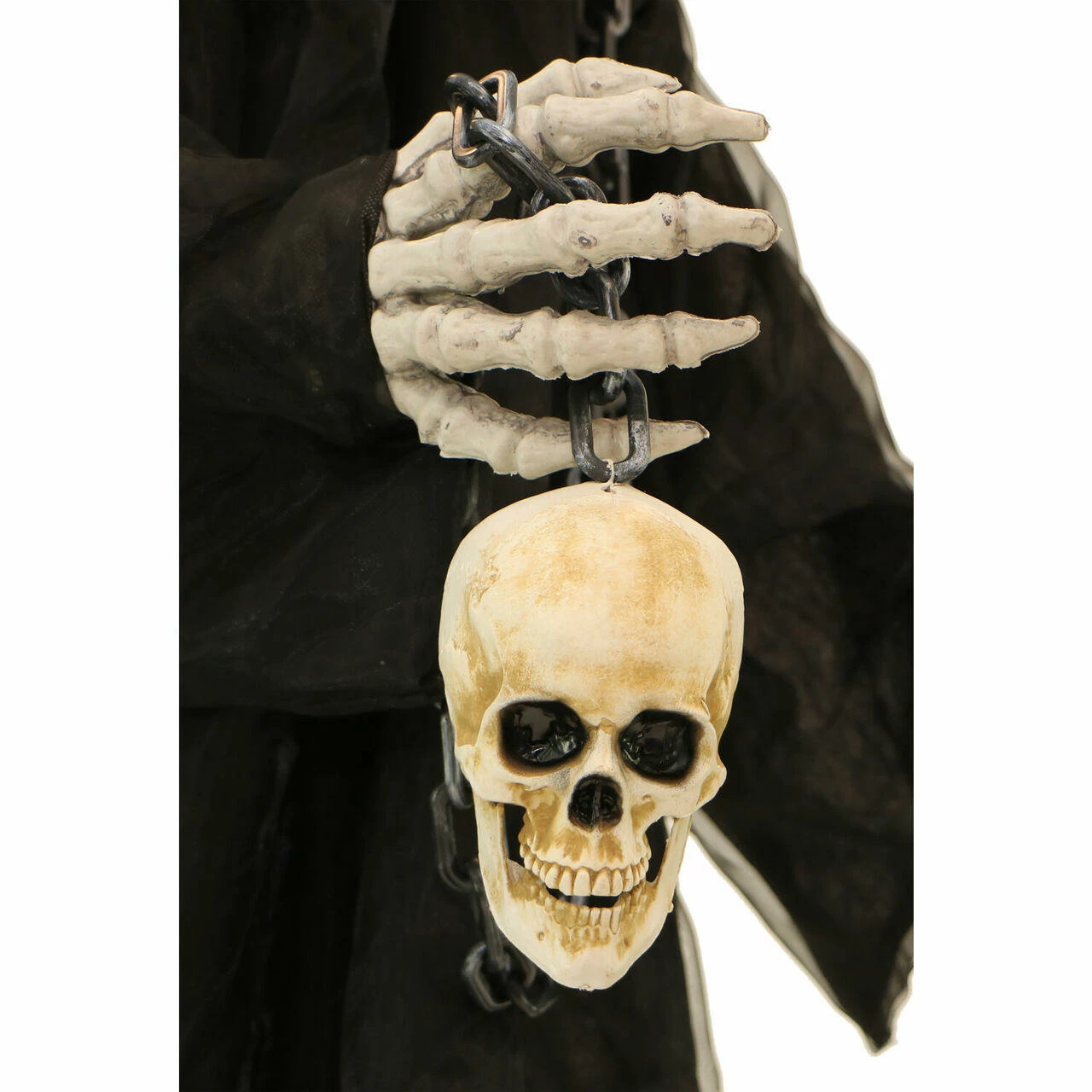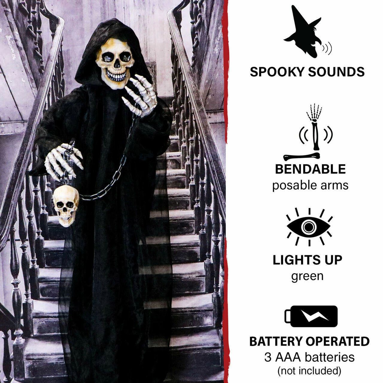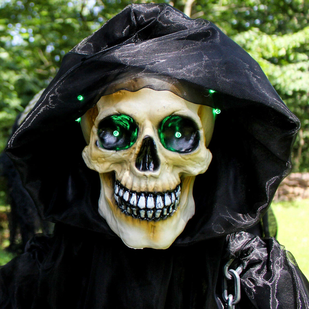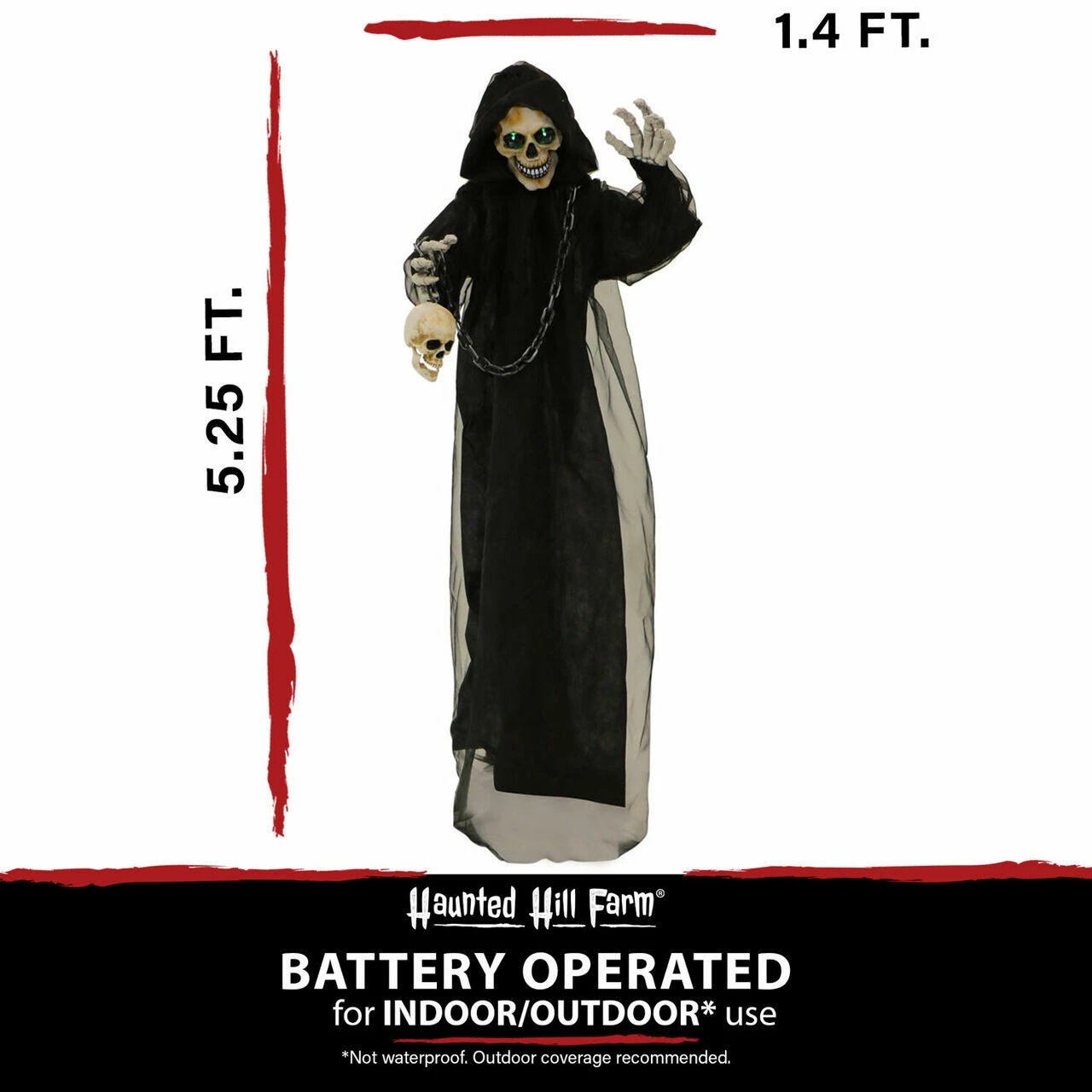 - 5.2-ft light-up reaper with chains for indoor and covered outdoor display