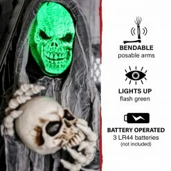 - Figure can hang to fit eerily into your Halloween decor with the 5-inch hanging loop