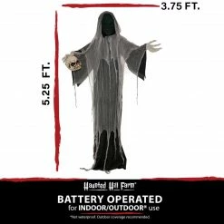 - 5.25-ft. standing light-up reaper for indoor and covered outdoor display