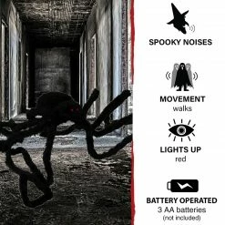 Be afraid. Be very afraid of Haunted Hill Farm’s Haunted Cobweb Collection. These blood curdling creatures are sure to terrify any trick-or-treaters, co-workers, or customers. Your visitors will do a double take before crossing Malachi’s path. This foreboding 5.2-ft. spider will horrify trick-or-treaters with his flashing red eyes and dark black fur. As he waits for victims, he moves around and emits haunting rattling noises. Bend his eight poseable arms into a variety of frightening positions to keep the scares coming all night long. This Halloween, Malachi is ready to spin a festive web of fear; place him in your yard, on your front porch, or in your doorway to send creepy, crawly chills down your entire block.