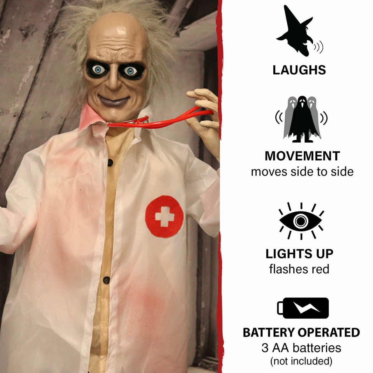 - 5.4-ft. animatronic doctor for indoor and covered outdoor display
