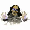 Be afraid! Be very afraid of Haunted Hill Farm’s Voodoo collection. These blood-curdling creatures are sure to terrify any trick-or-treaters, co-workers, or customers. Johnny, the skeleton groom, looks dapper in his red and black suit and hat, but don’t let his fresh style distract you from his terrifying presence. You’ll catch his glowing green stare even from a distance, and his creepiness will leave you feeling his eyes on you long after you’re gone. If that wasn’t scary enough, his touch-activated voice comes alive with striking mystical sounds of lightning layered over the chilling threat of “I see you,” along with his horrifying laugh. Johnny’s penetrating gaze will ensure that no matter where you run or try to hide, he still sees you.
