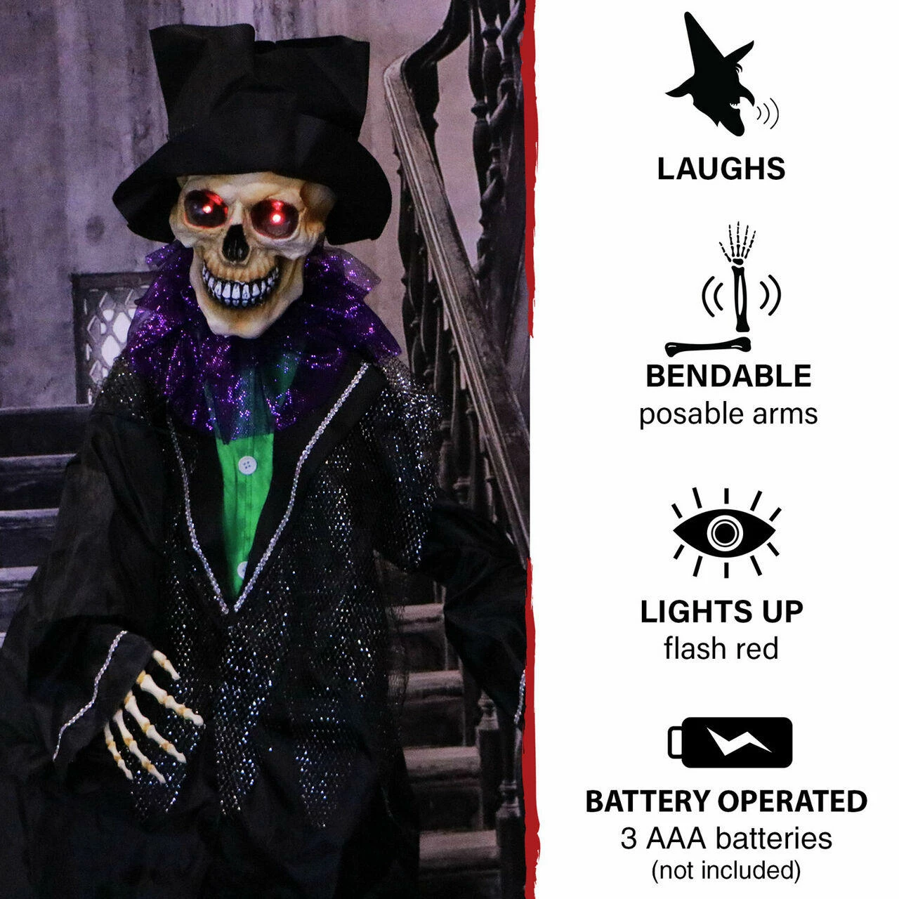 - Place him on the porch, in the hallway or in your own haunted house installation
