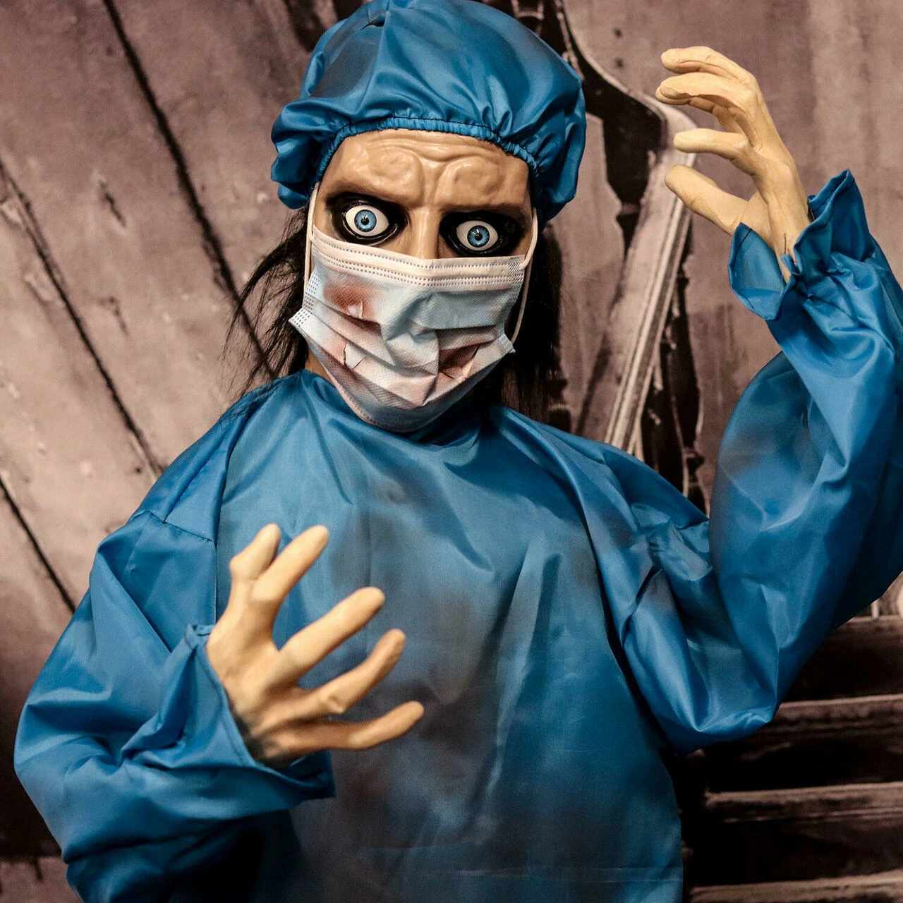 - 5.5-ft. animatronic doctor for indoor and covered outdoor display