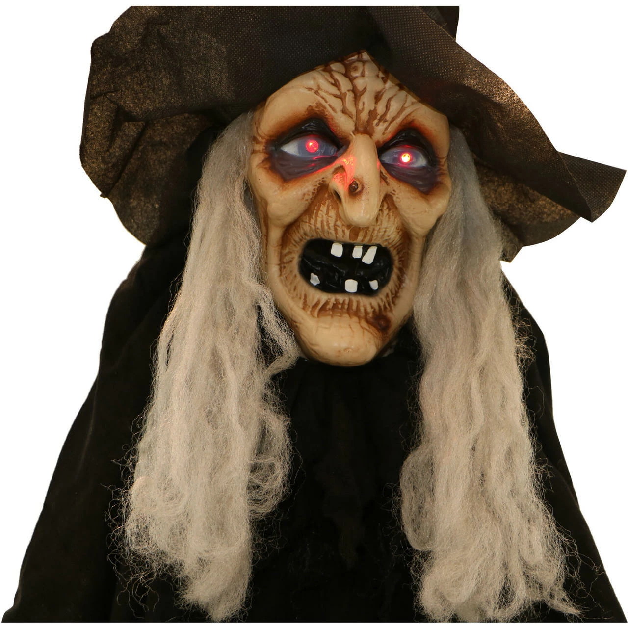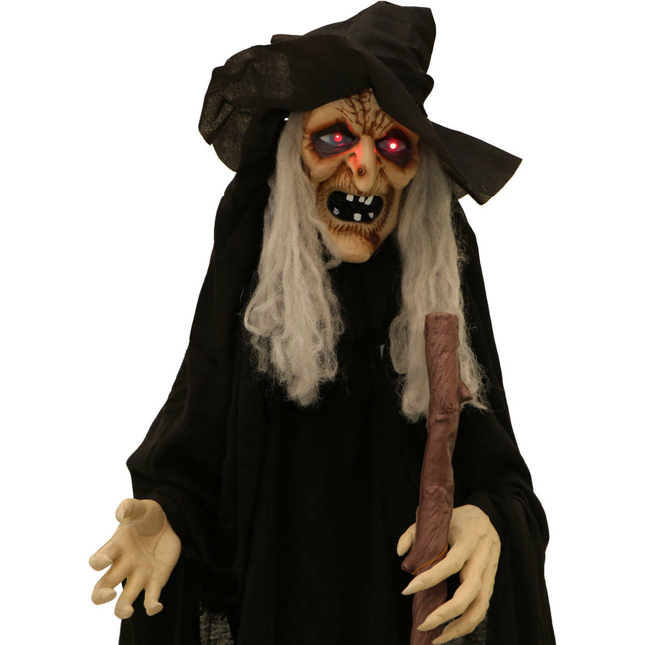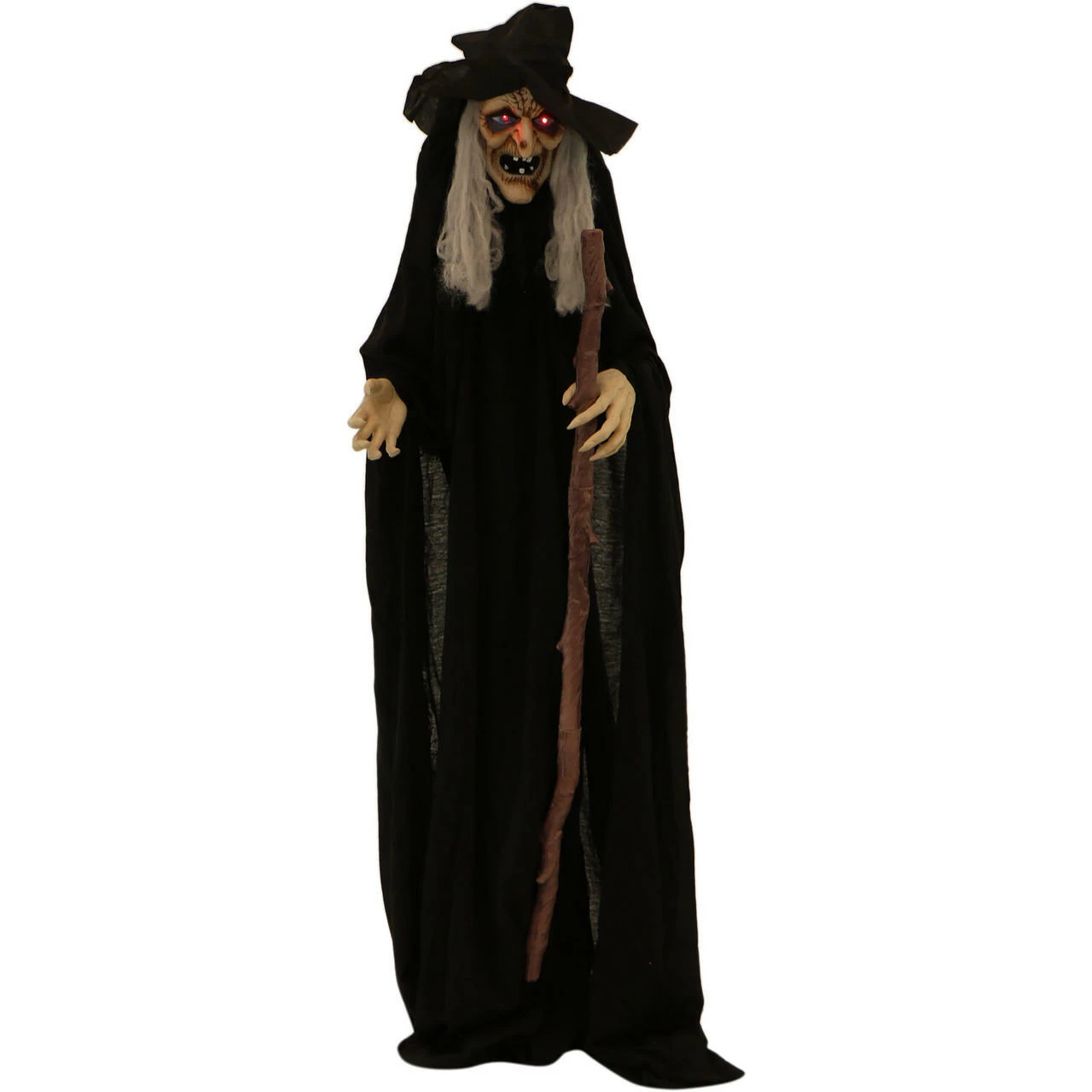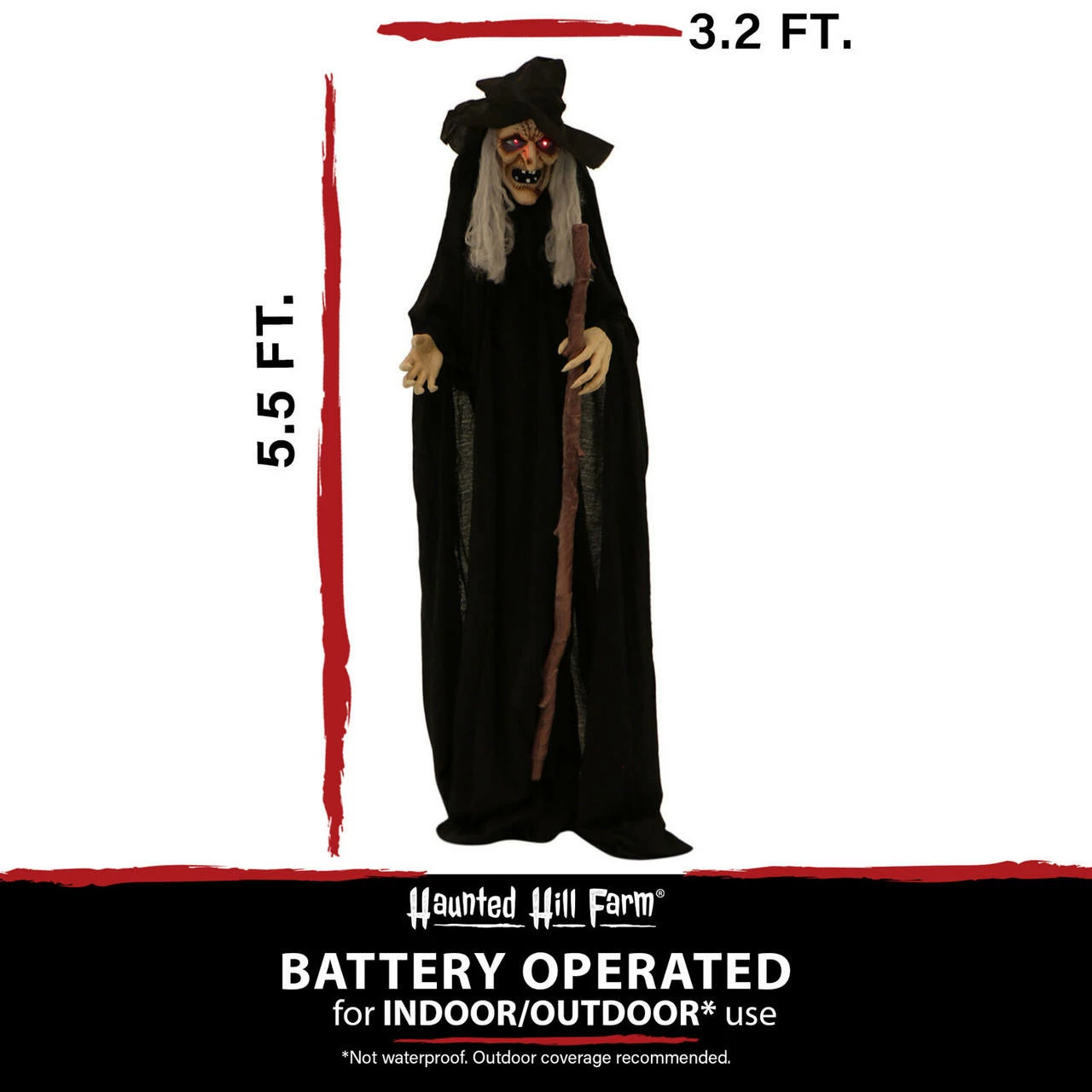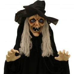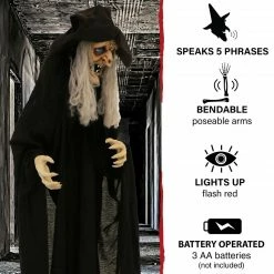 - 5.5-ft. talking witch with cane for indoor and covered outdoor display