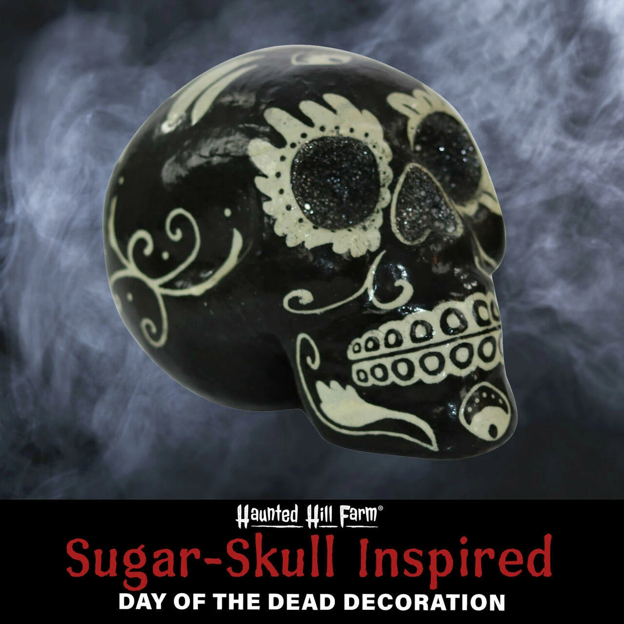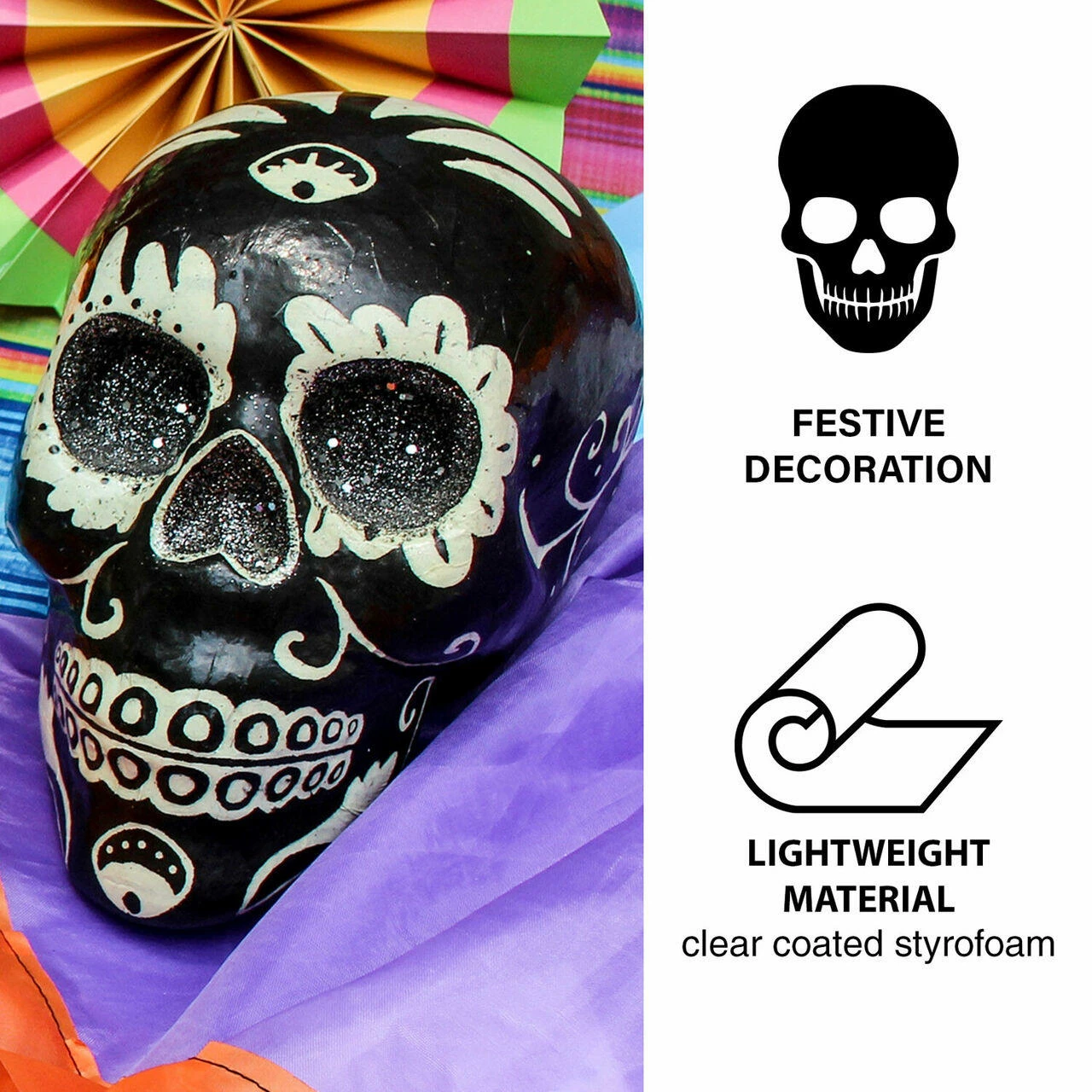 - 5.5-in. sugar-skull inspired Day of the Dead decorative skull
