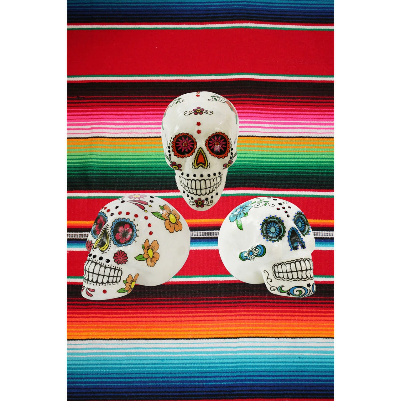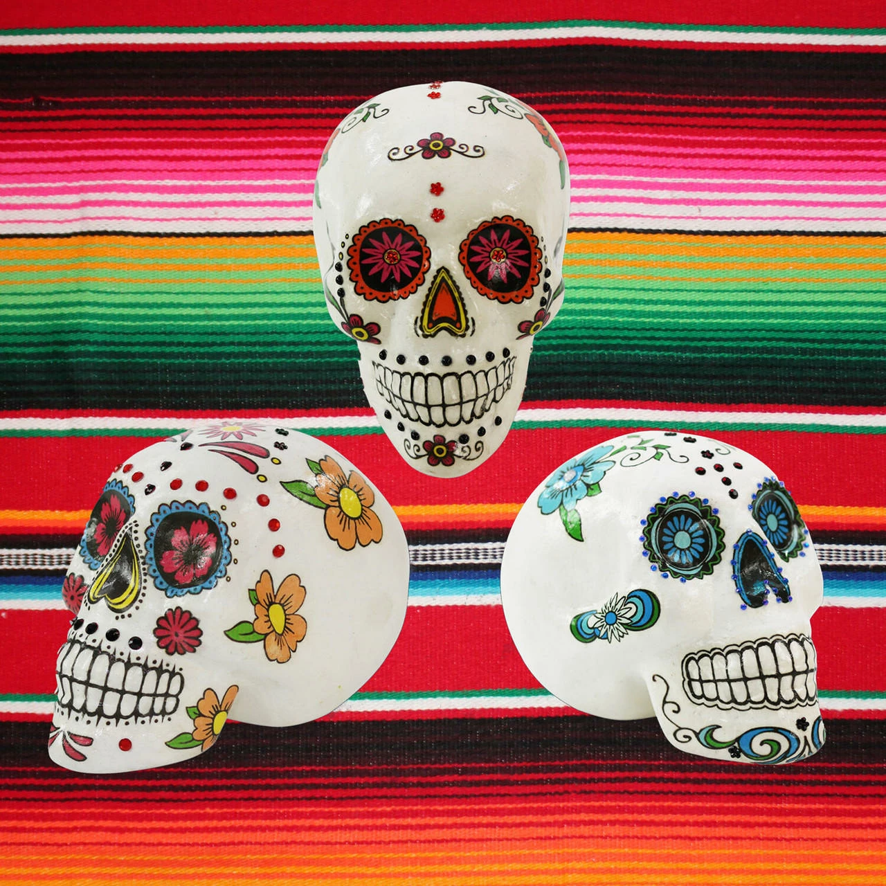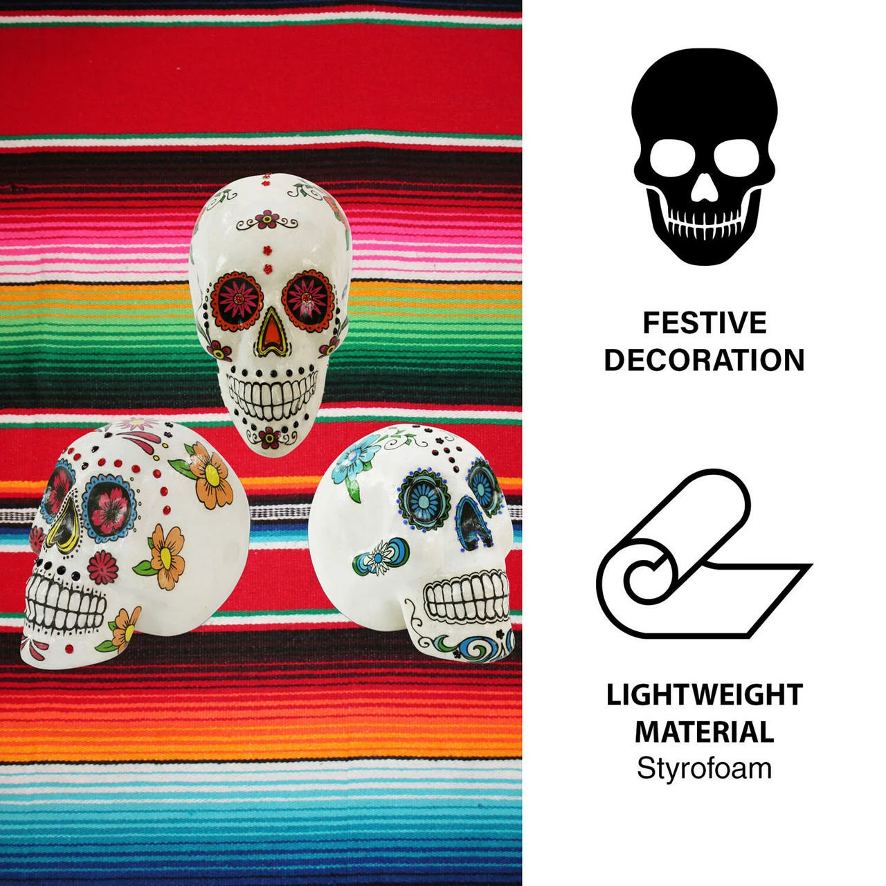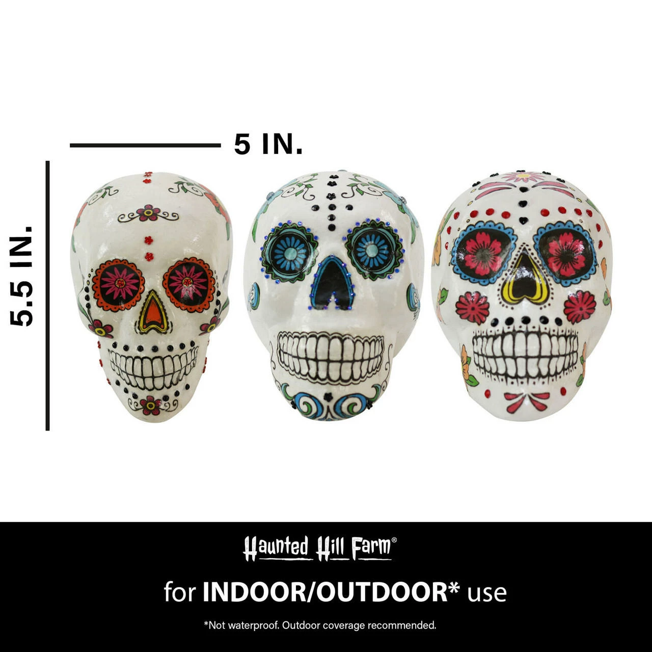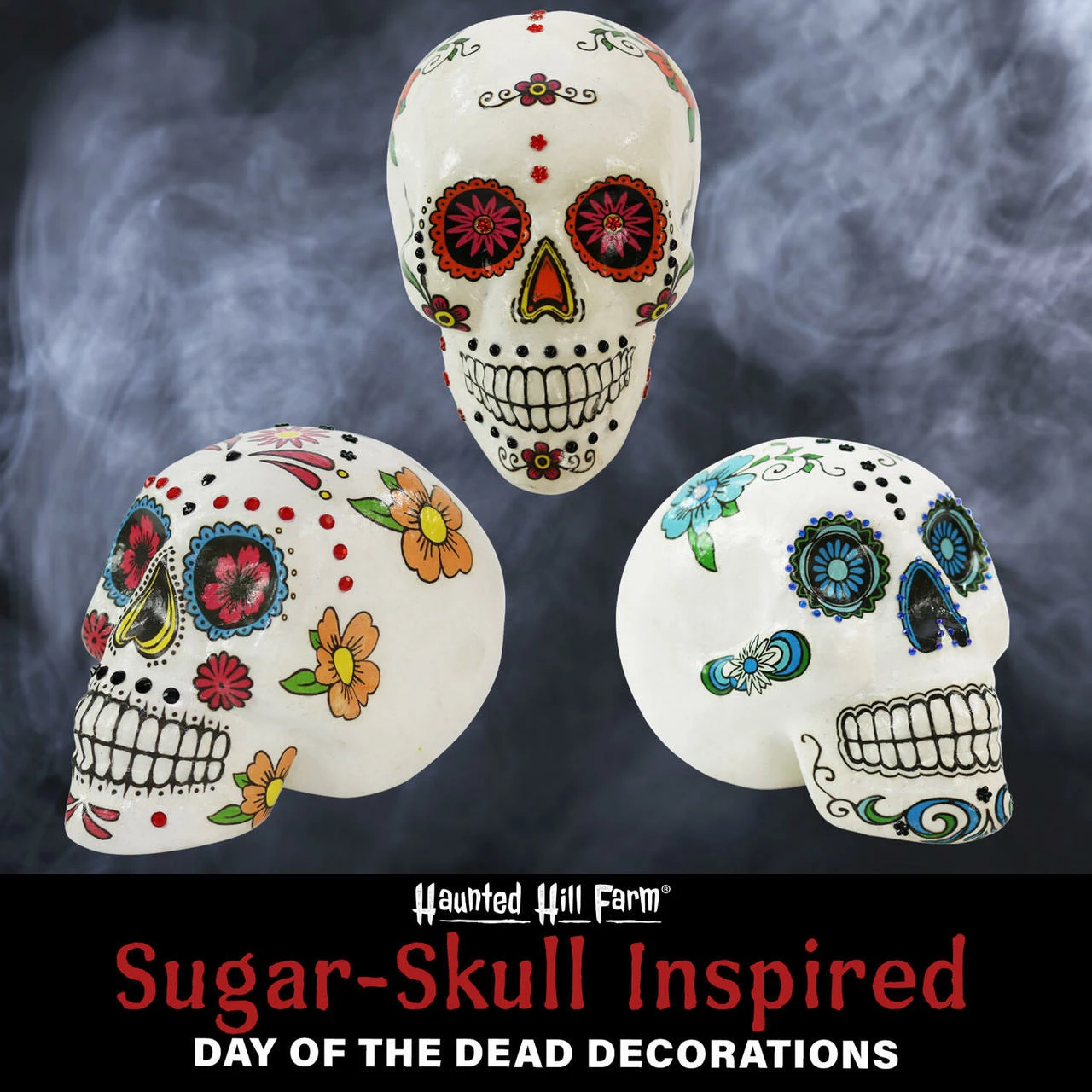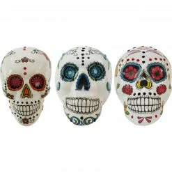 - 5.5-in. set of 3 sugar-skull inspired Day of the Dead decorative skulls