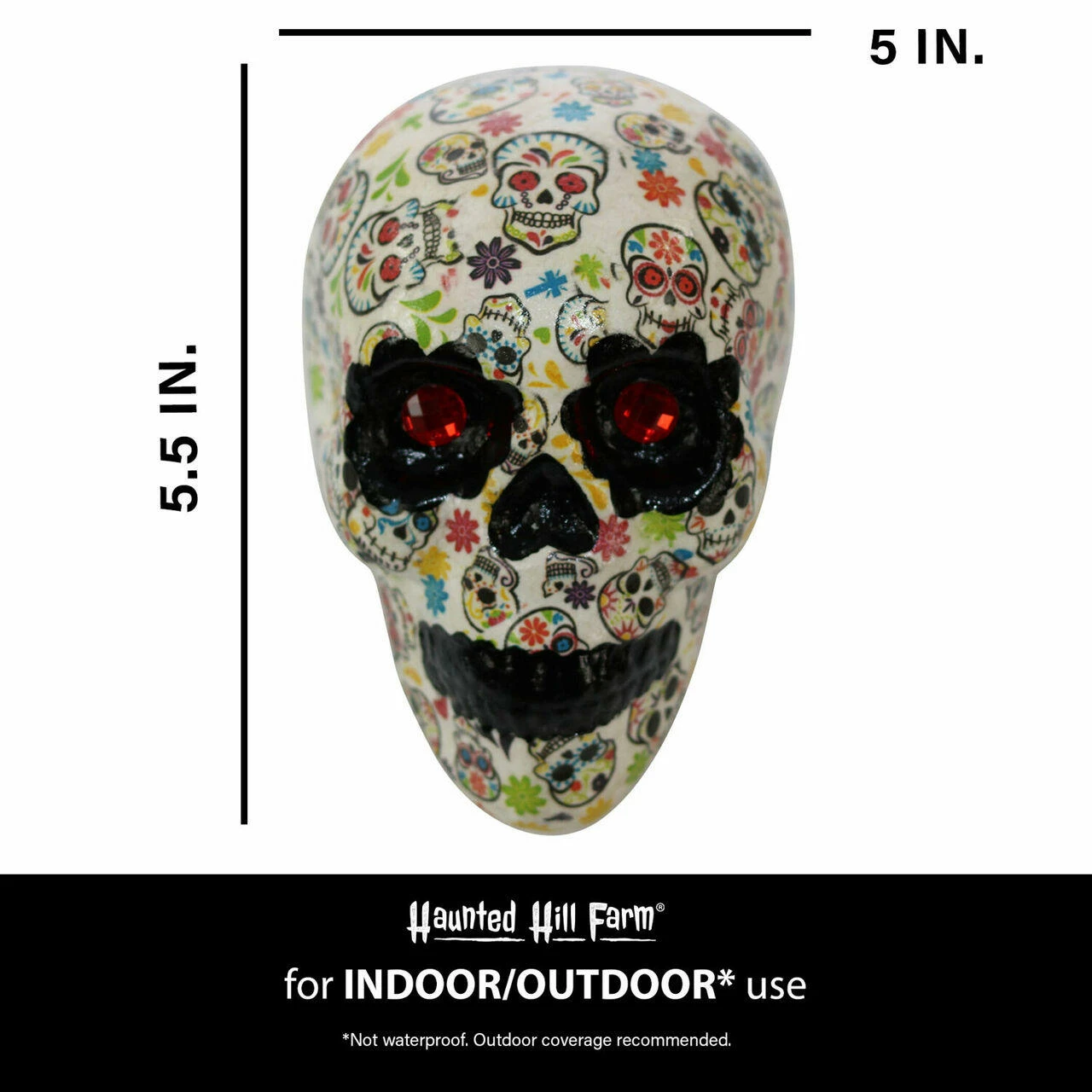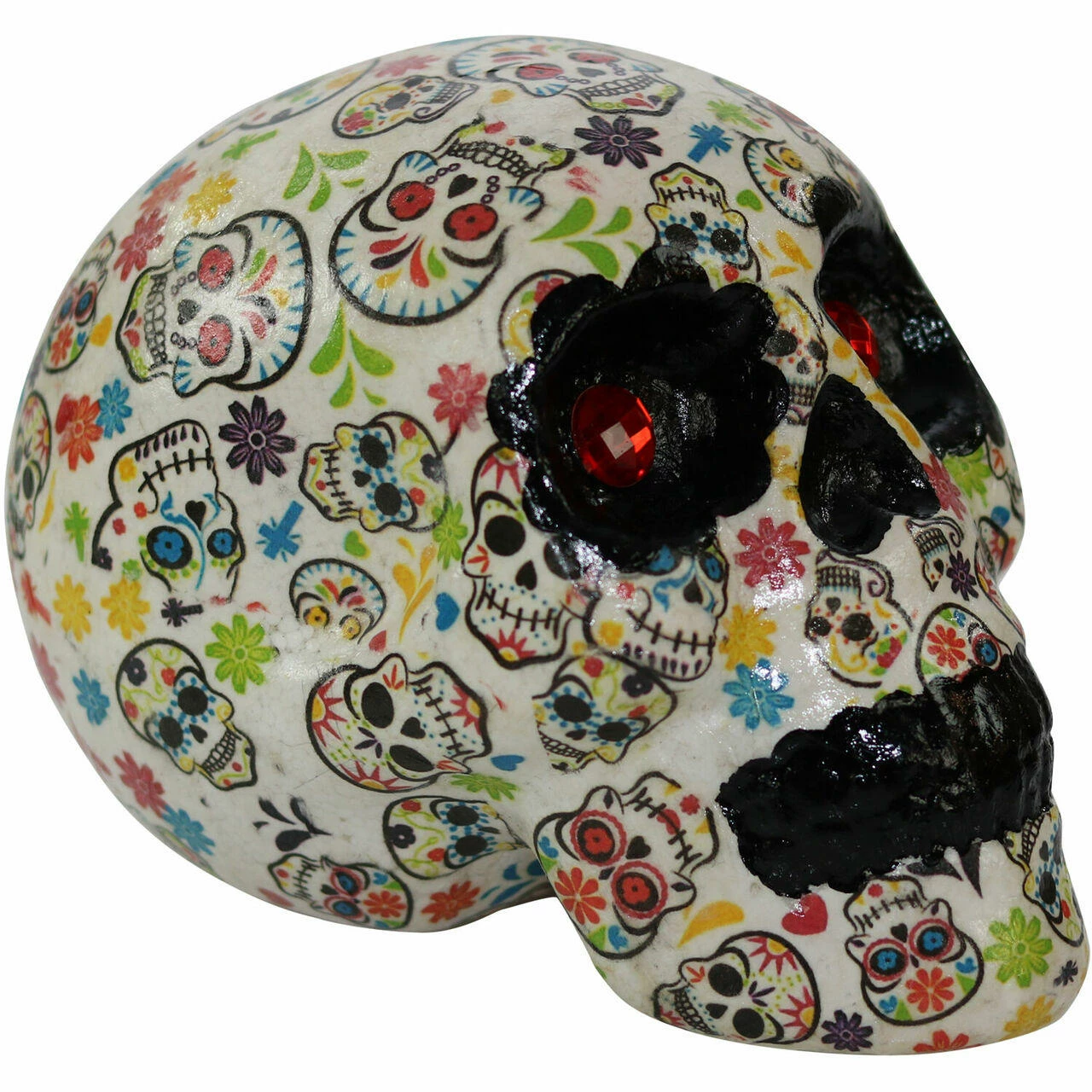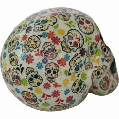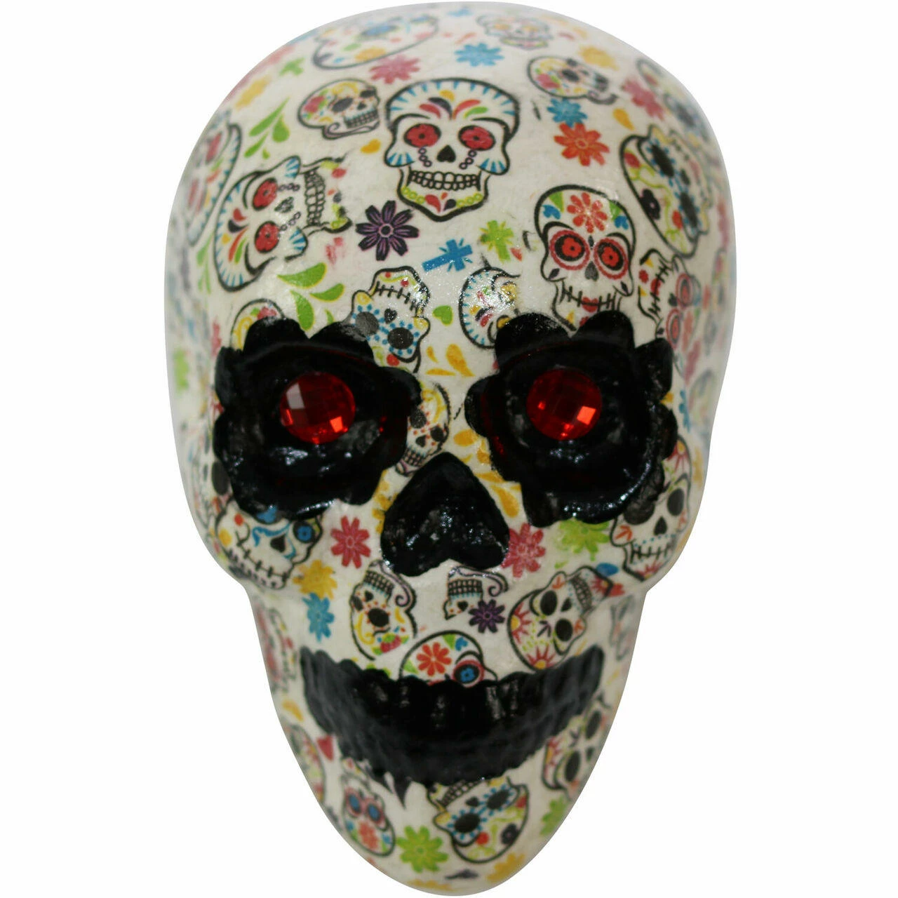 - 5.5-in. sugar-skull inspired Day of the Dead decorative skull