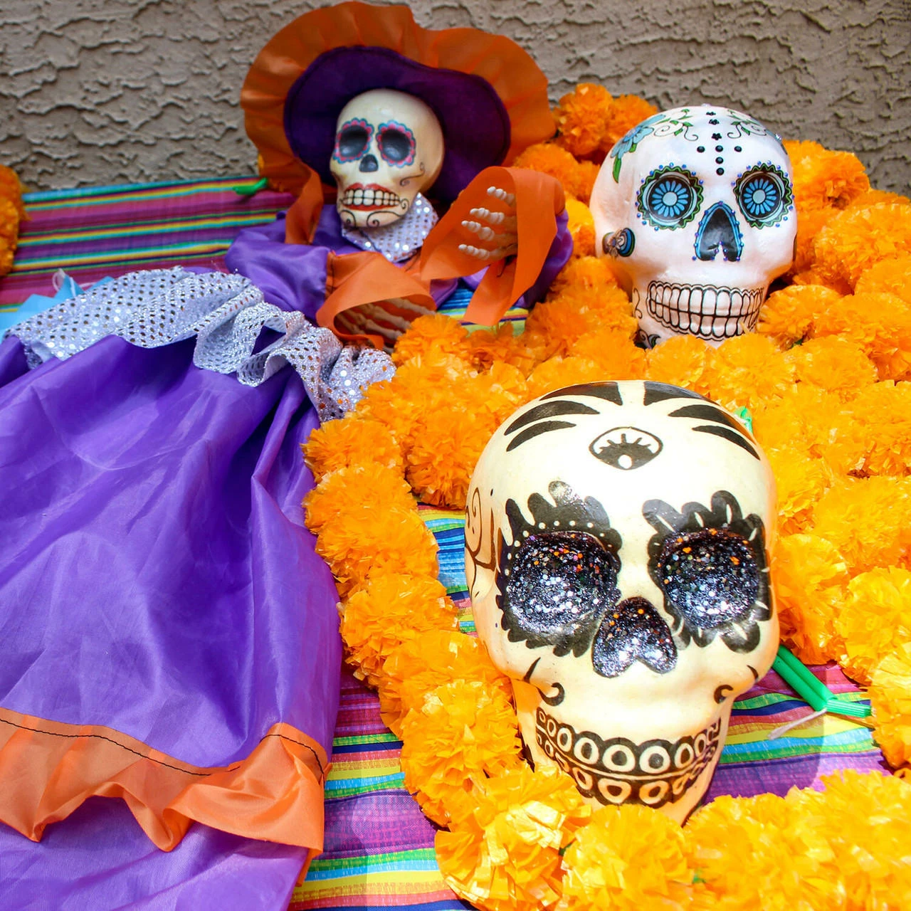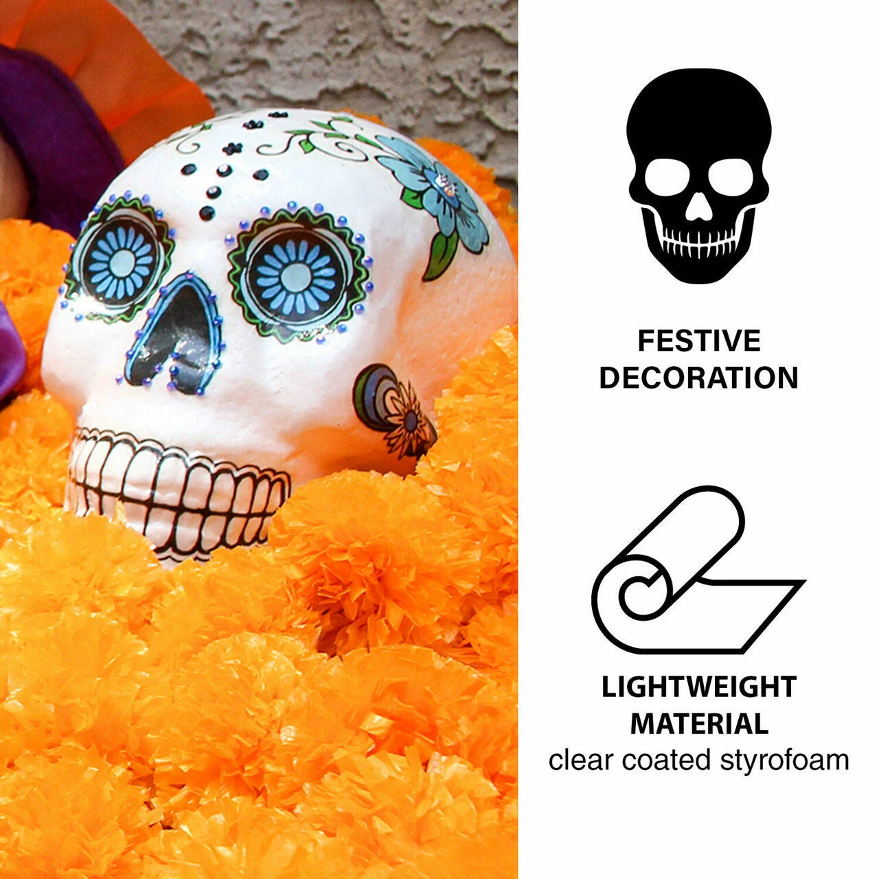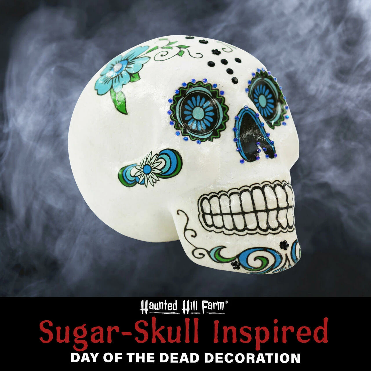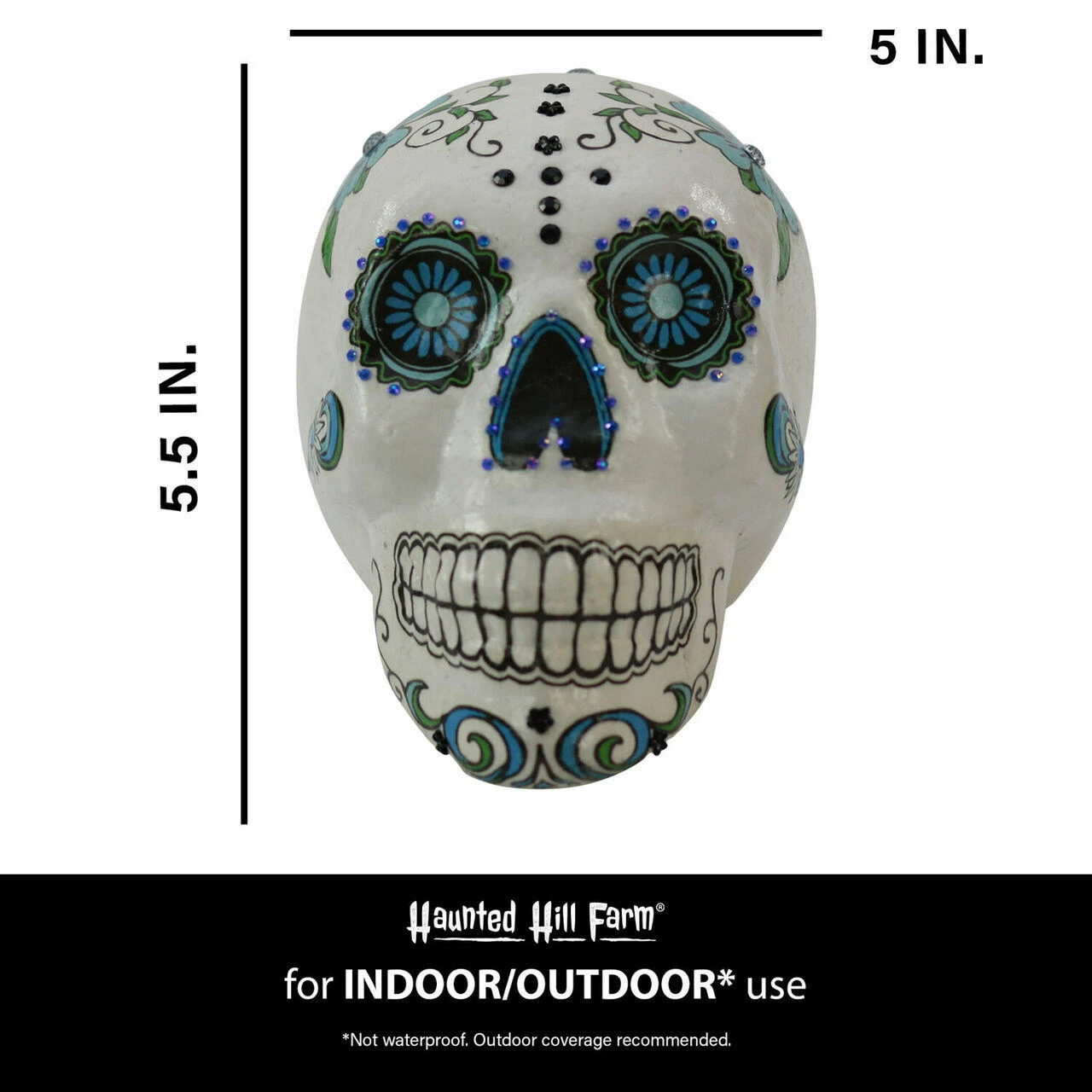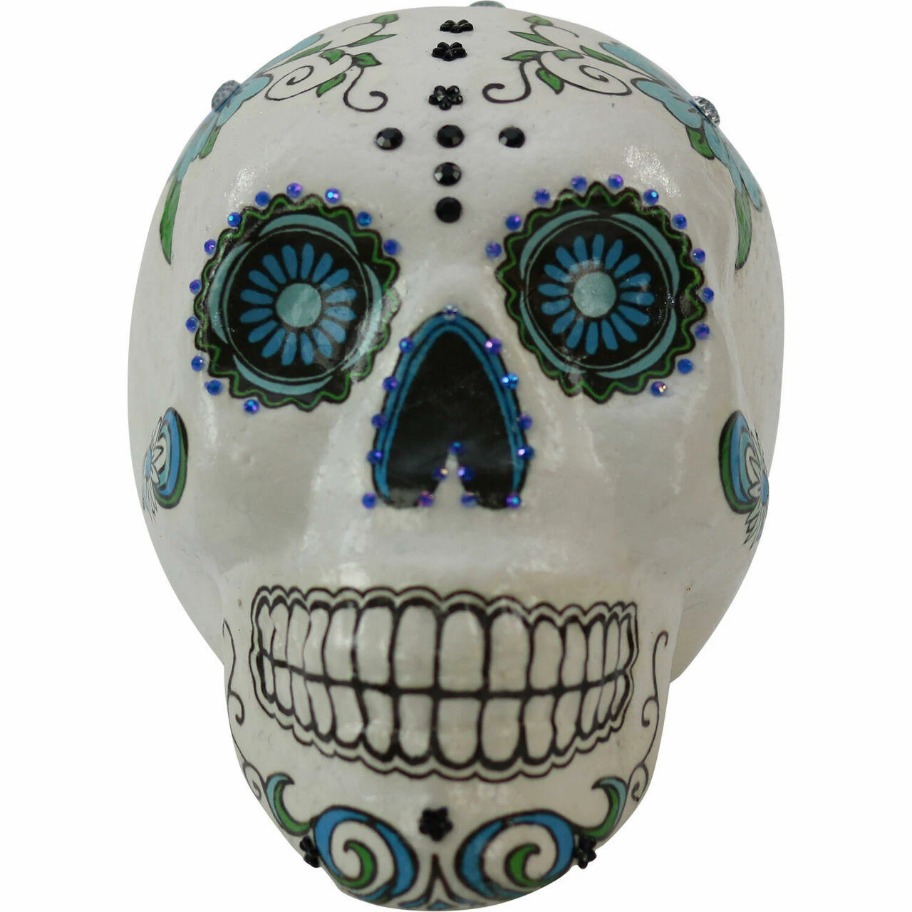 - 5.5-in. sugar-skull inspired Day of the Dead decorative skull
