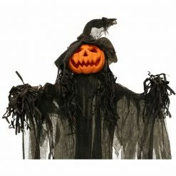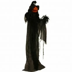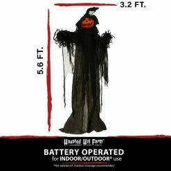 - 5.6-ft. standing pumpkin witch for indoor and covered outdoor display