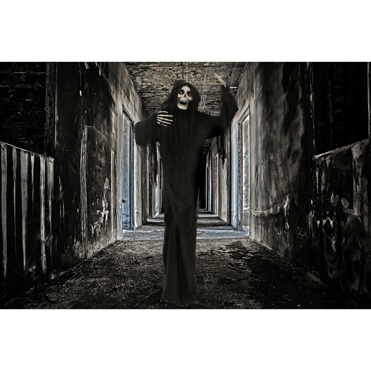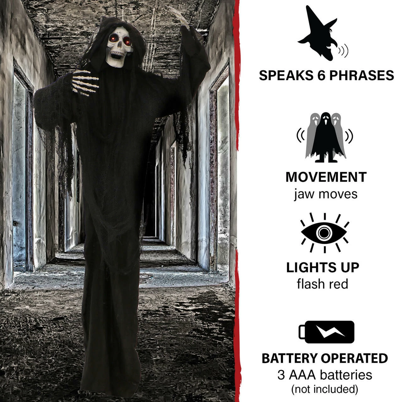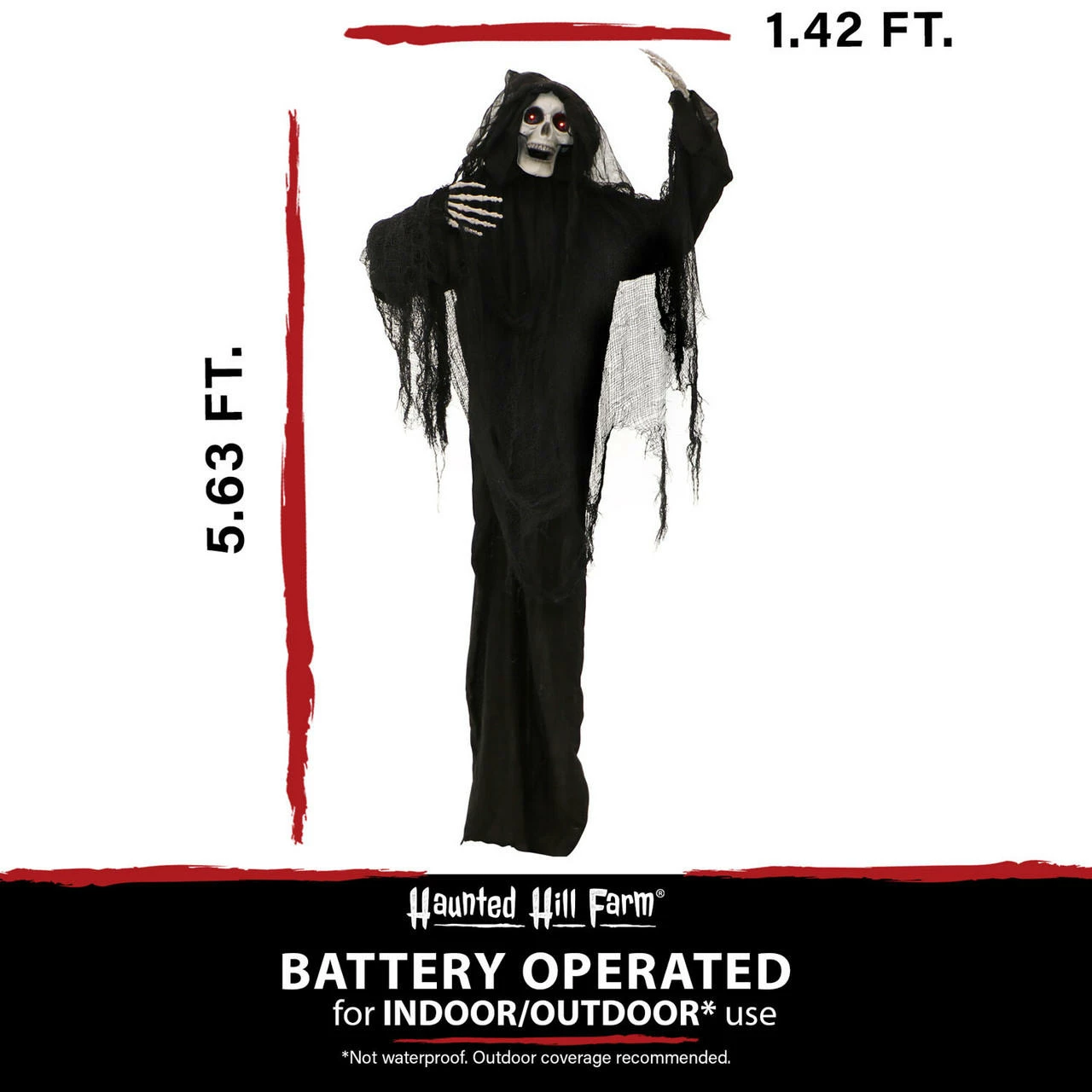 - 5.63-ft. standing animated reaper for indoor and covered outdoor display
