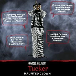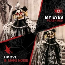 - 5.75-ft. animatronic, battery operated clown for indoor and covered outdoor display