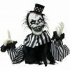 Be afraid. Be very afraid of Haunted Hill Farm’s Haunted Circus Collection. These blood-curdling creatures are sure to terrify any trick-or-treaters, co-workers, or customers. Right this way! Spike the Clown wouldn’t dream of starting his show without you. His neon clock contrasts perfectly with his black dress as he waits with chilling glee. Spike snickers and taunts all who cross his path, his red flashing eyes illuminating the night. “Did I scare you?? he asks. “Good. You taste much better when you’re scared!? he exclaims with a wicked laugh. Whether standing or suspended from his hanging loop, his crouched life-sized figure is sure to horrify victims. Place Spike next to your candy and he will surprise whoever dares take a treat. One glimpse at his pale wrinkled face, electric red hair, freakish face paint, and contrasting clothes are enough to stop visitors in their tracks– even in the daylight. Invite Spike to be the cruel finishing touch to your haunted house this Halloween. He even has a gift for you, and it’s not a balloon…