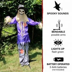 - 5.83-ft. standing scarecrow with lights and sound for indoor and covered outdoor display