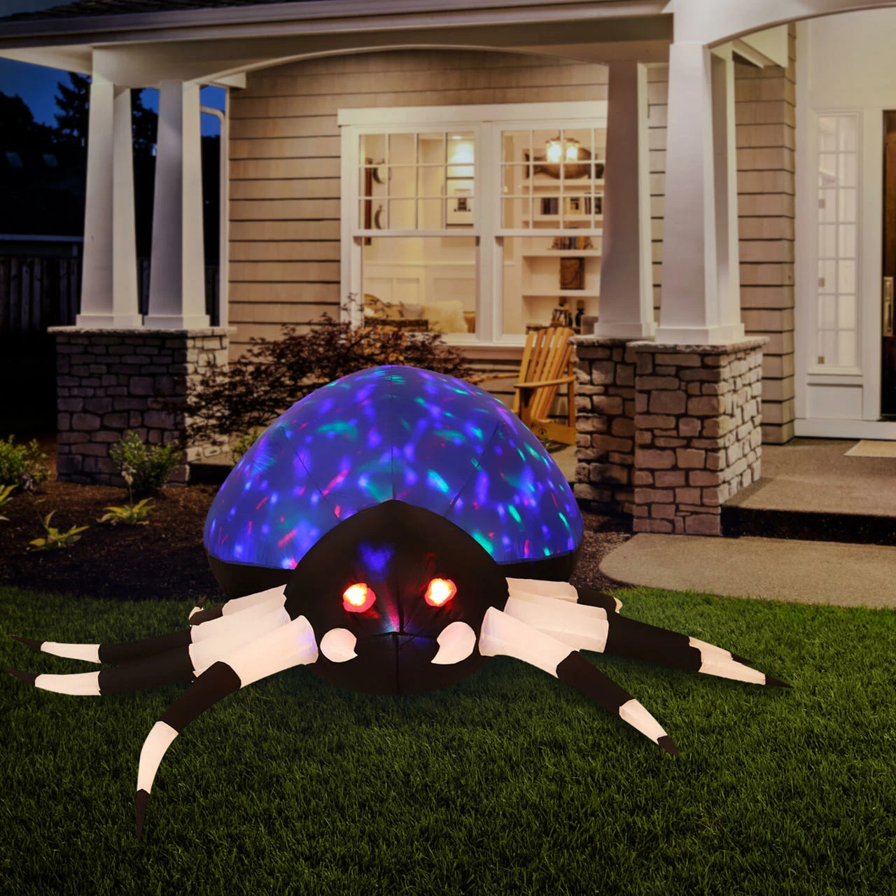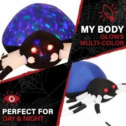 - 5.9-ft. wide Inflatable Blue Spider with Multi-Color Disco Lights by Haunted Hill Farm