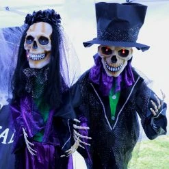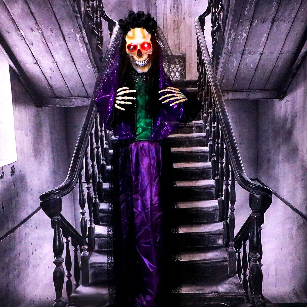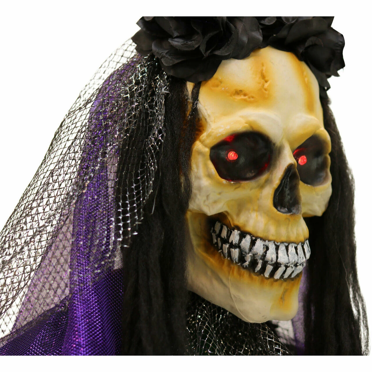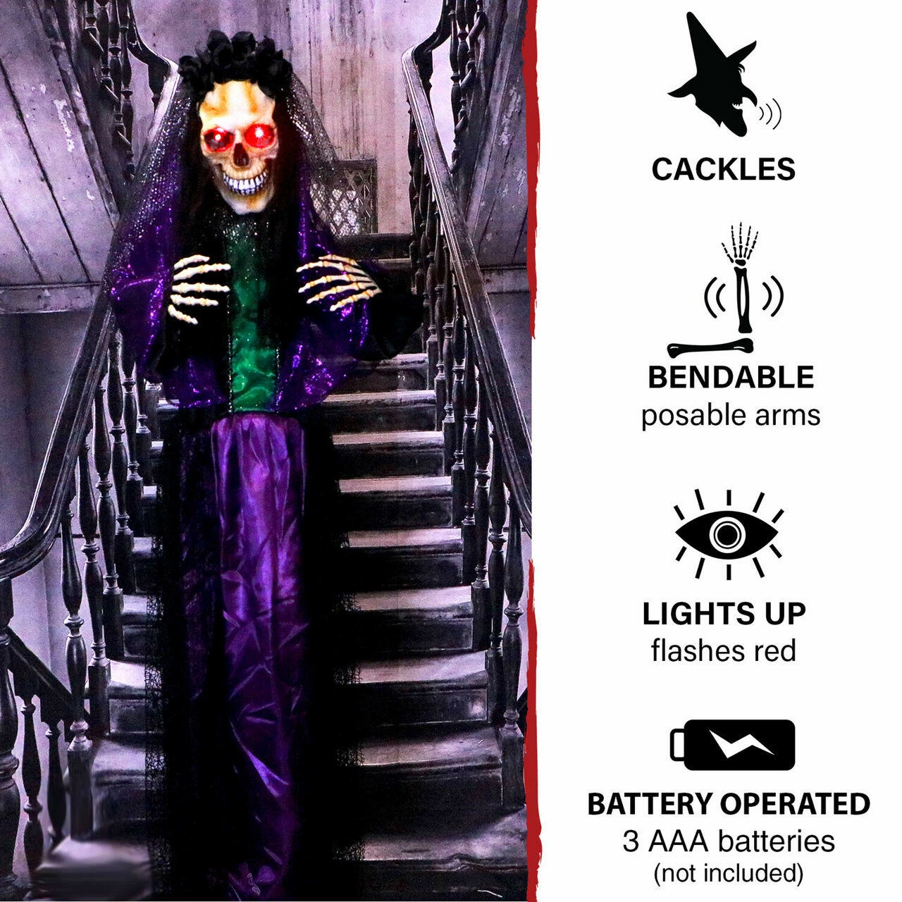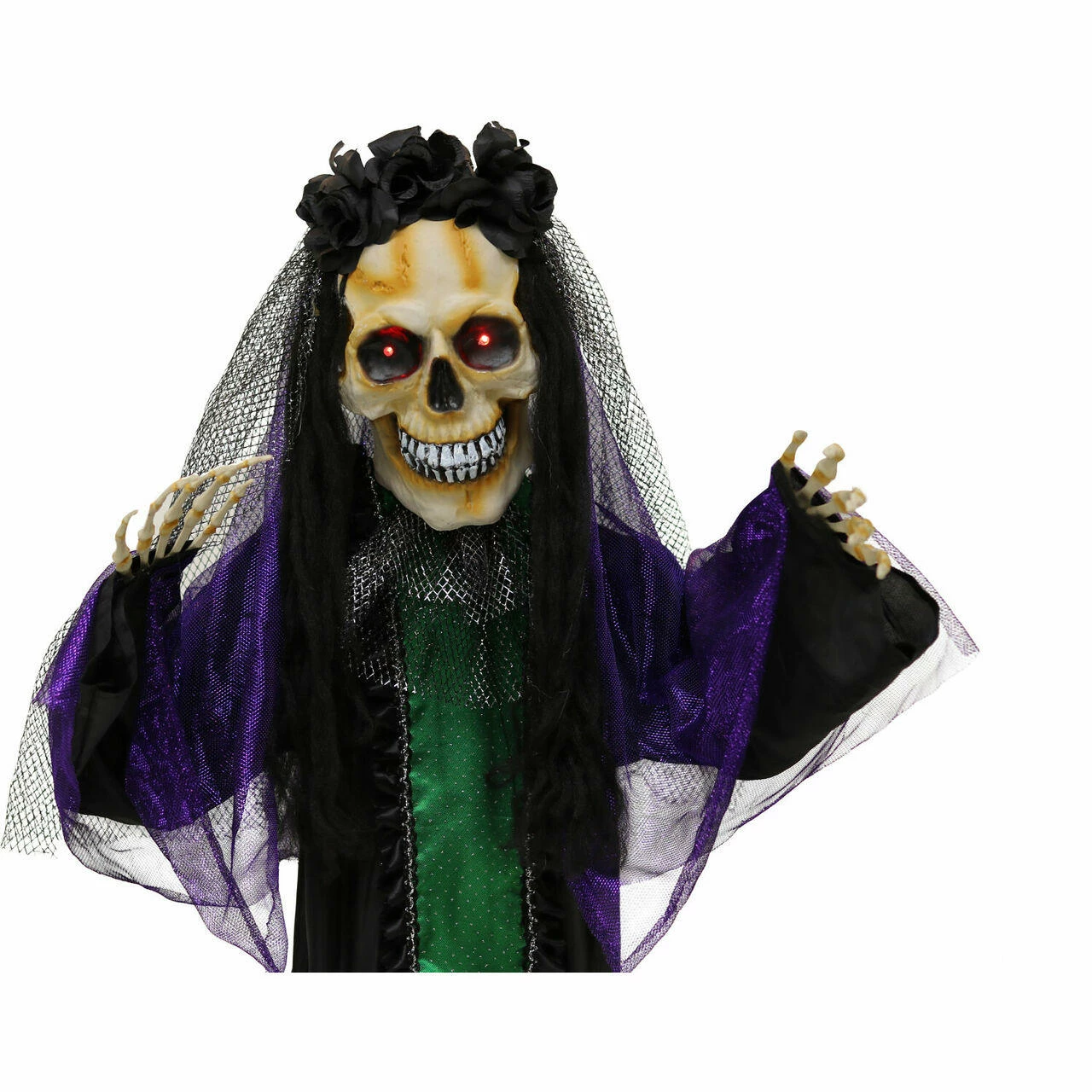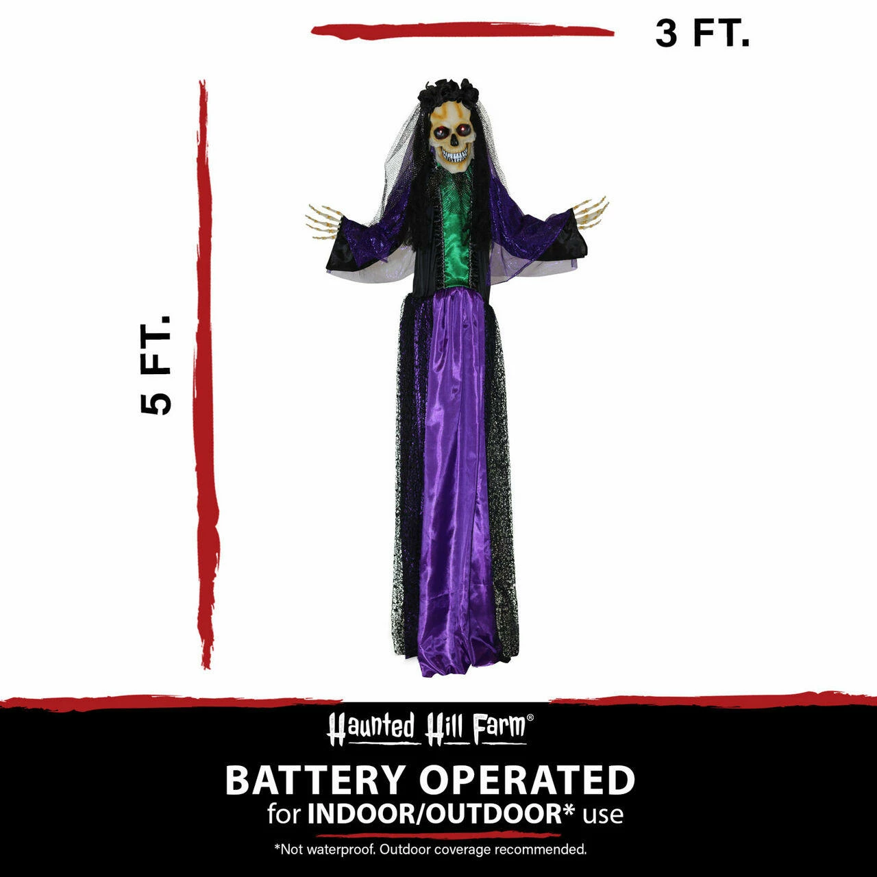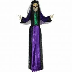 - 5-ft. animatronic, battery operated voodoo lady for indoor and covered outdoor display
