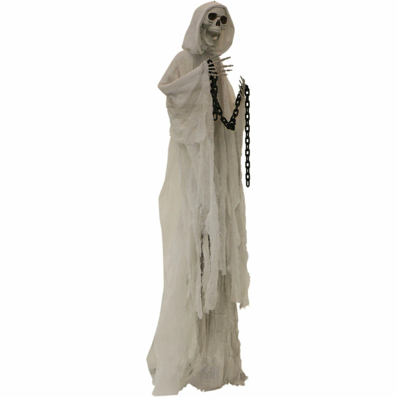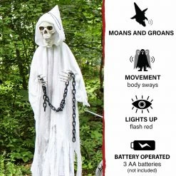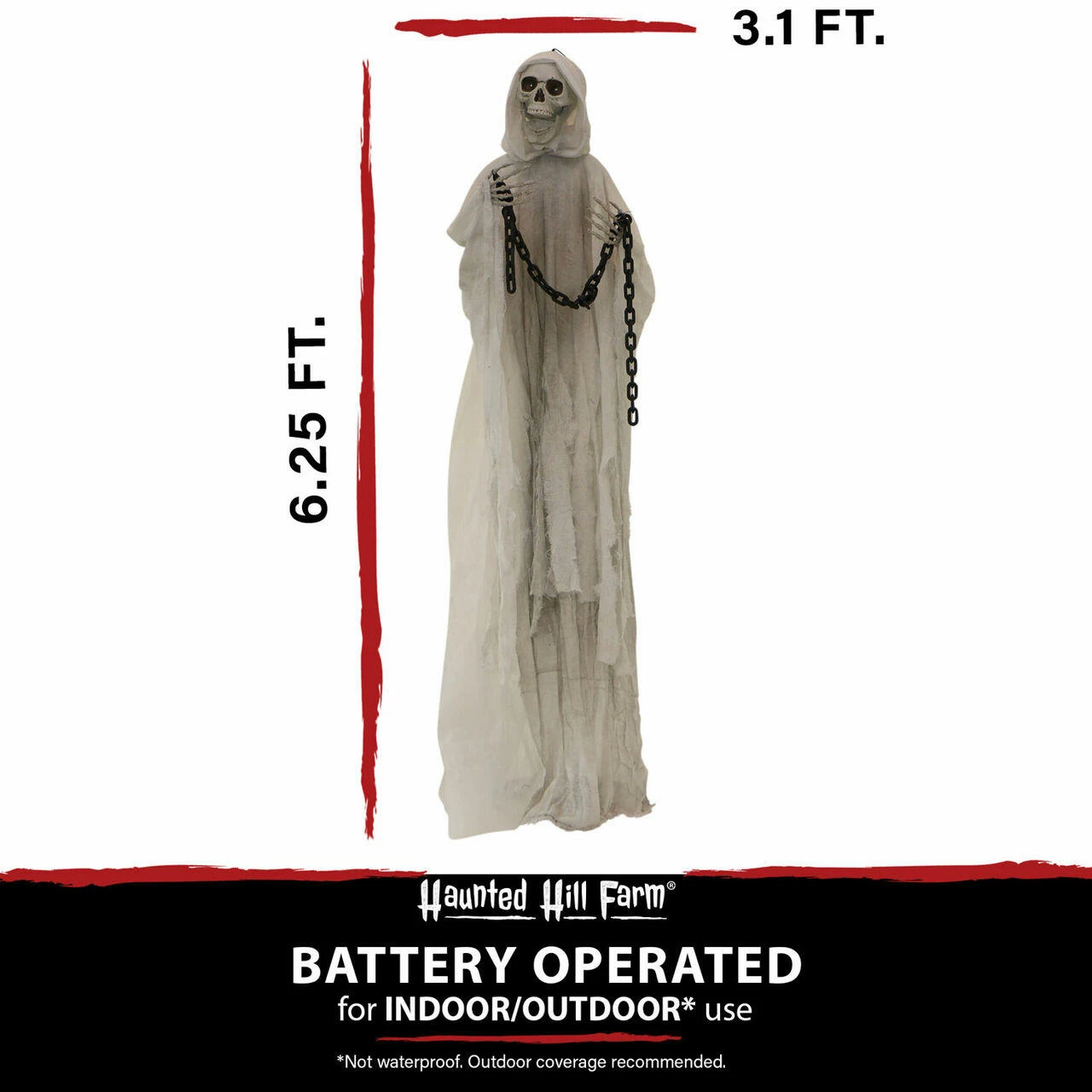 - 6.25-ft. animated reaper with chains for indoor or covered outdoor display