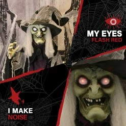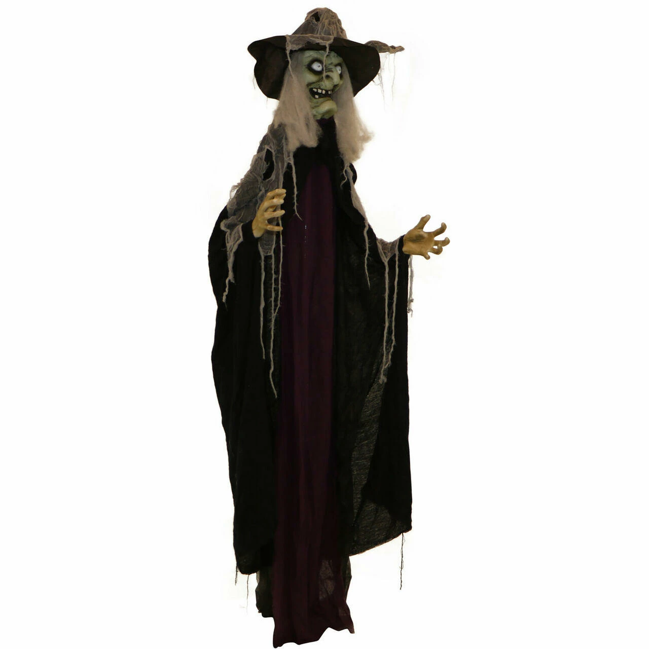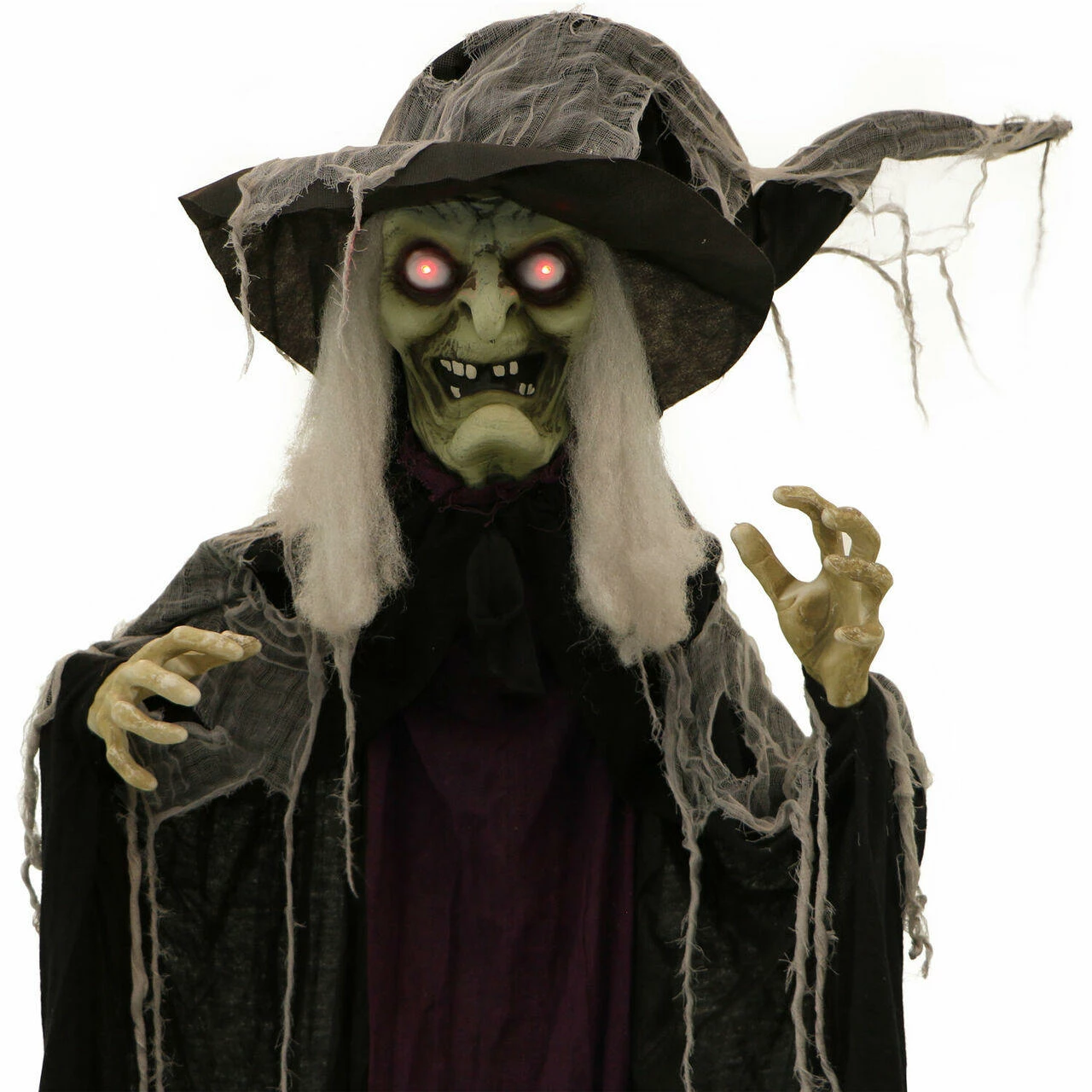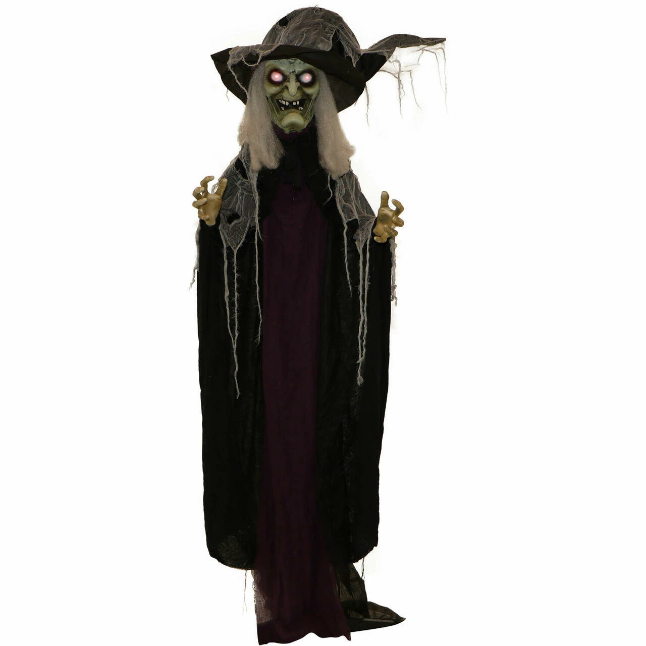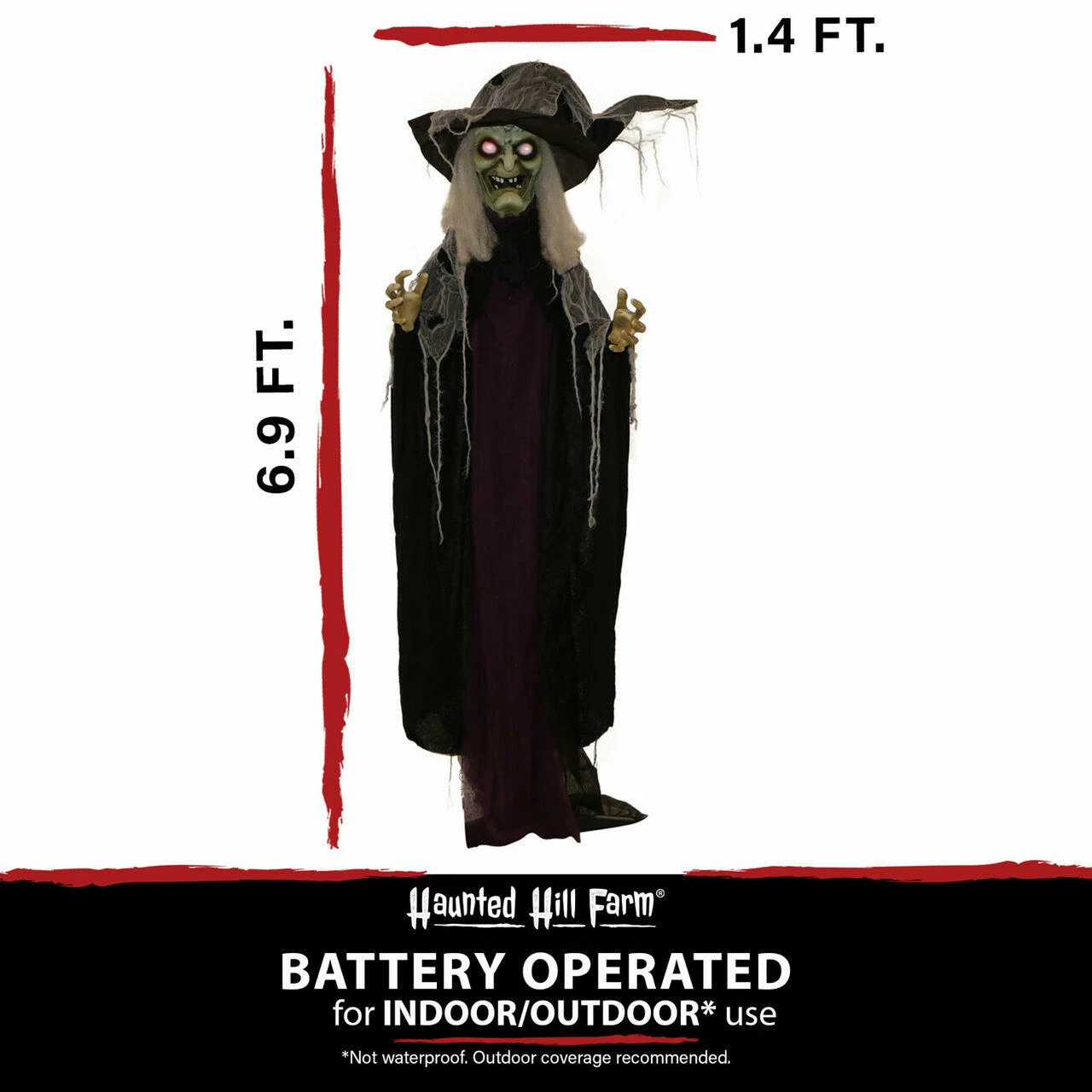 - 6.9-ft. standing animated witch for indoor and covered outdoor display