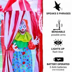 - 6.6-ft. animated hanging clown for indoor and covered outdoor display
