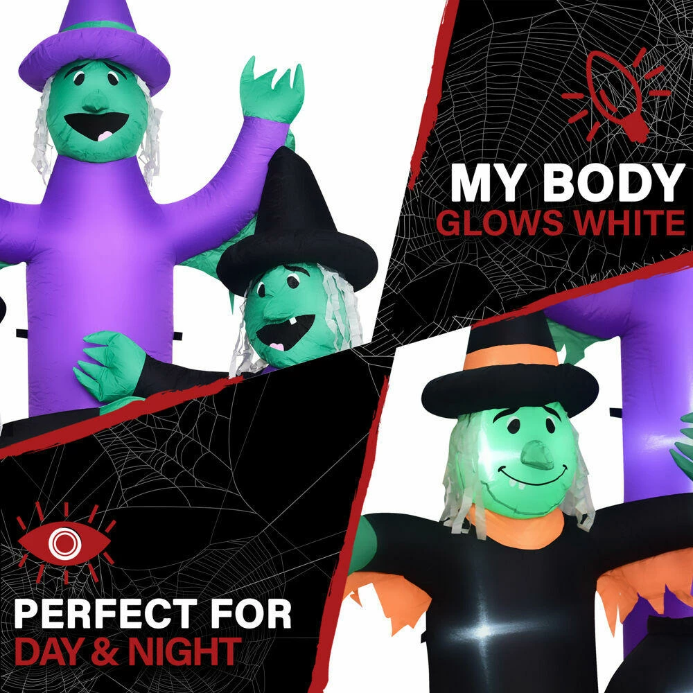 Your neighbors will be in for a fright when they see your 6-Ft. Inflatable Brewing Witch Trio with Cauldron. This pre-lit inflatable is outfitted with seven internal white LED lights and will be the centerpiece of your own personal haunted house. It’s big enough to make the neighbors notice but still works in smaller yards or walkways. It’s the perfect trick to give your trick-or-treaters a scare without giving them nightmares. The treat is how quick and easy it is to set up with included ropes and lawn stakes for secure installation. Thanks to the internal lights and fan all you need to do is unpack it, plug it in, stake it down and you’re ready for some scary fun all Fall long. Created out of durable, weather resistant polyester, you won’t need to worry about holes. Your inflatable will last year after year and scare after scare. With Haunted Hill Farm, you’ll be the scariest house on the block!