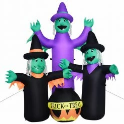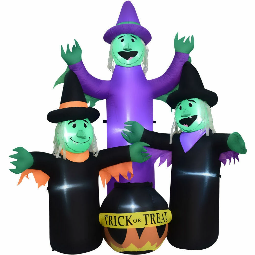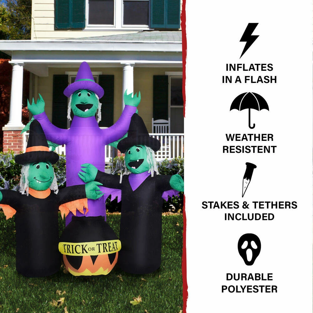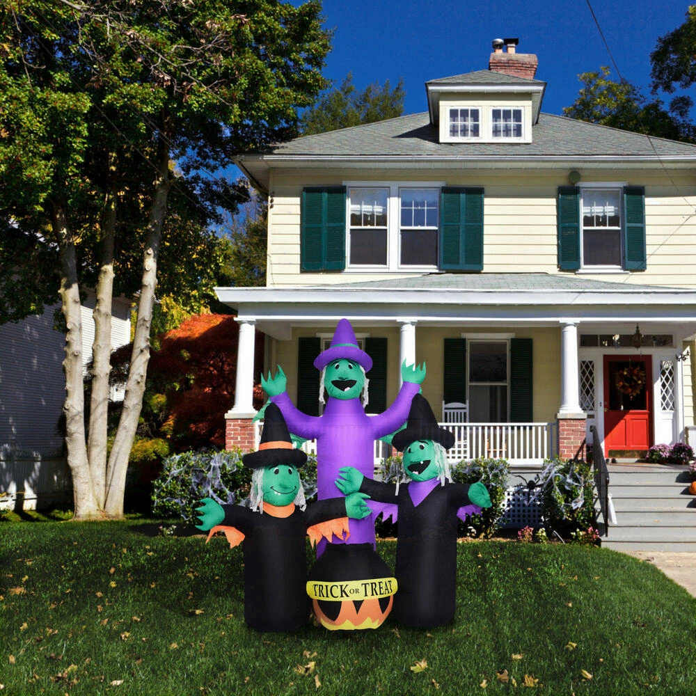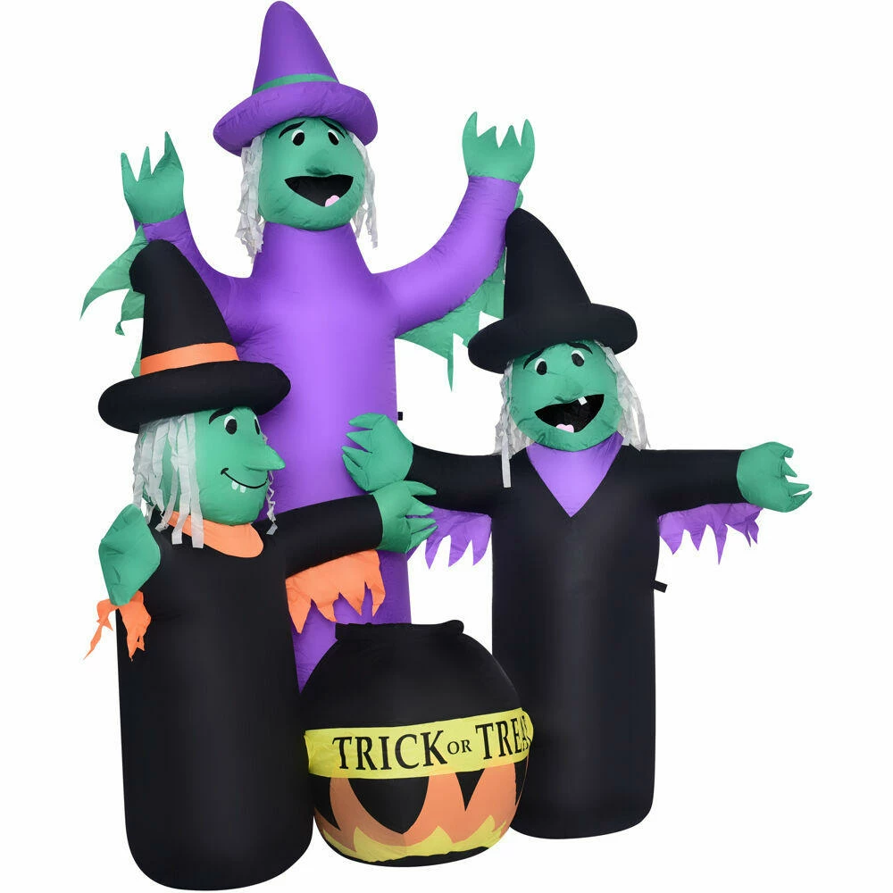 - 6-Ft. Inflatable Pre-Lit Brewing Witch Trio with Cauldron