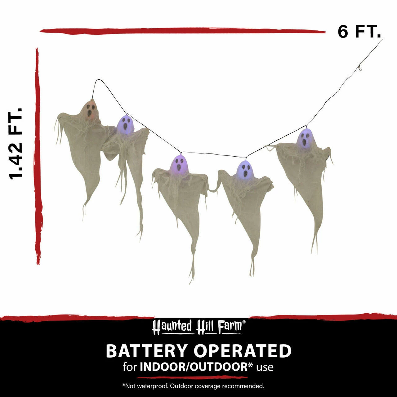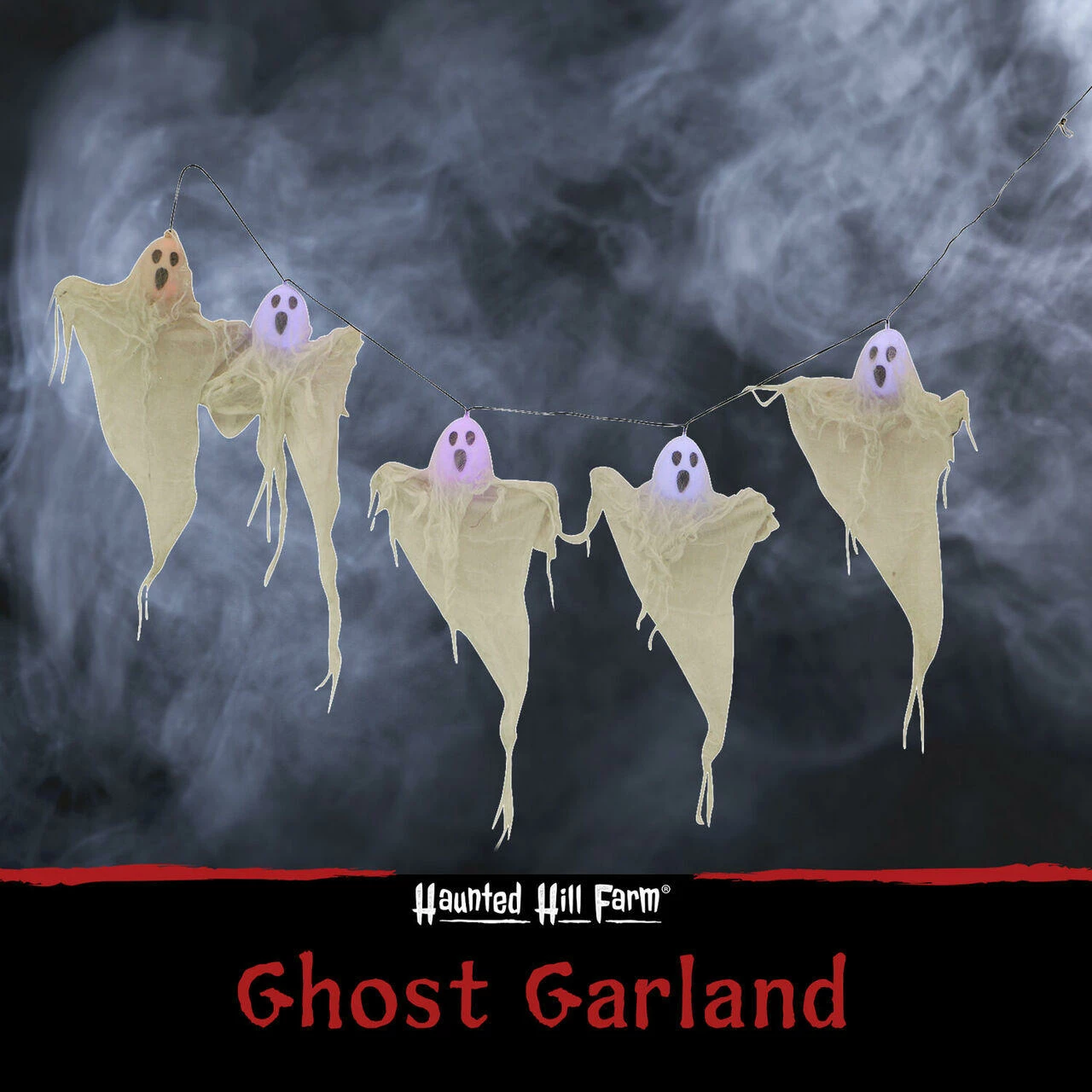 Drape some spookiness around your rooms with this haunted garland from Haunted Hill Farm. String up six feet of wispy apparitions across your mantel, doorway, or ceiling and watch them glow when the sun goes down. These creepy cute ghosts will add some flair to your decor without scaring everyone that walks by. Make sure every inch of your home is decorated for the season with Haunted Hill Farm.