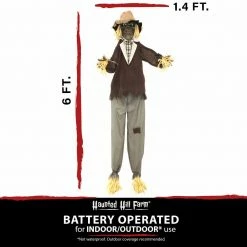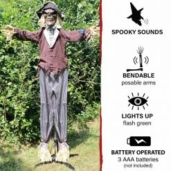 - 6-ft. light up standing scarecrow with sounds for indoor or covered outdoor display