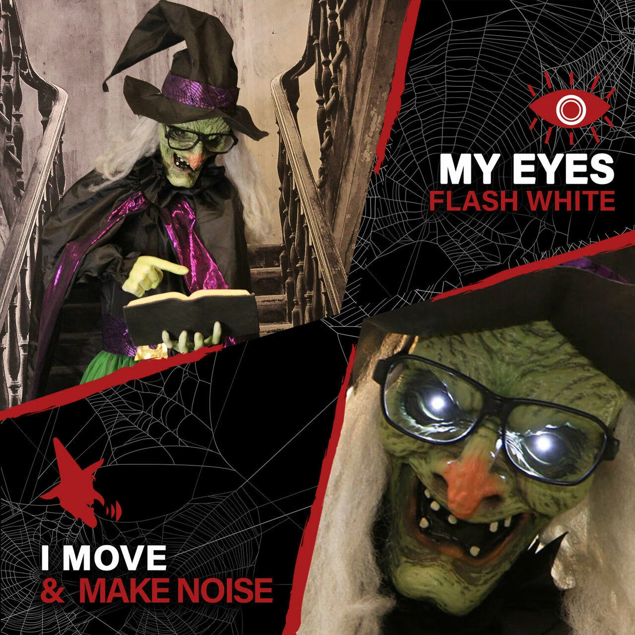 - Sinister witch voice greets guests with four chilling phrases