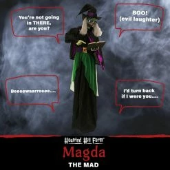 - Magda the Mad is touch activated- eyes flash white, head moves, talks, shrieks, laughs, ominous music