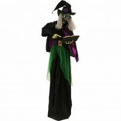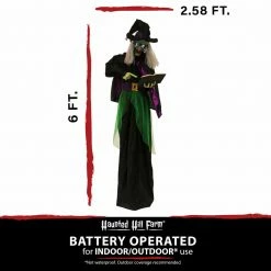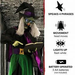 - 6-ft. Standing animated witch for indoor and covered outdoor display