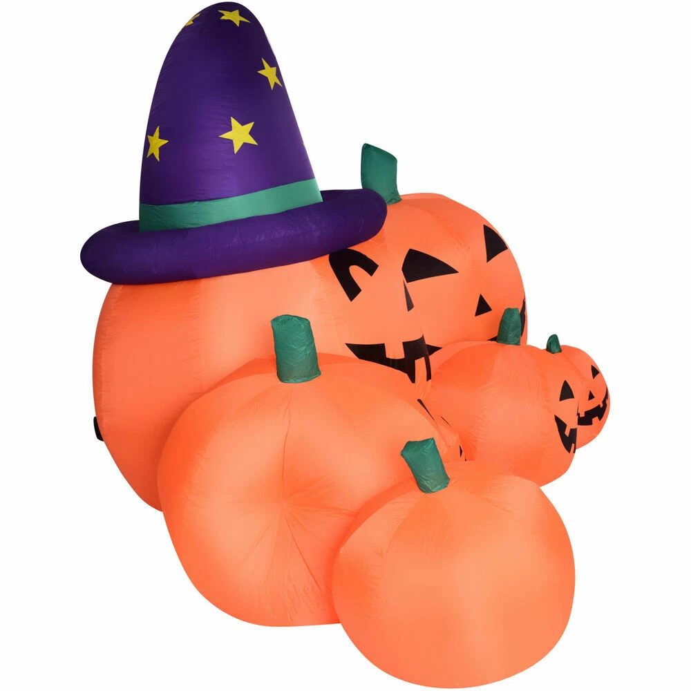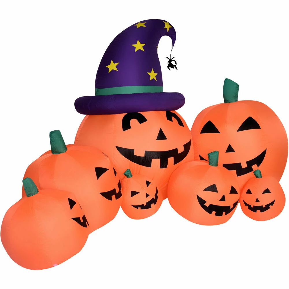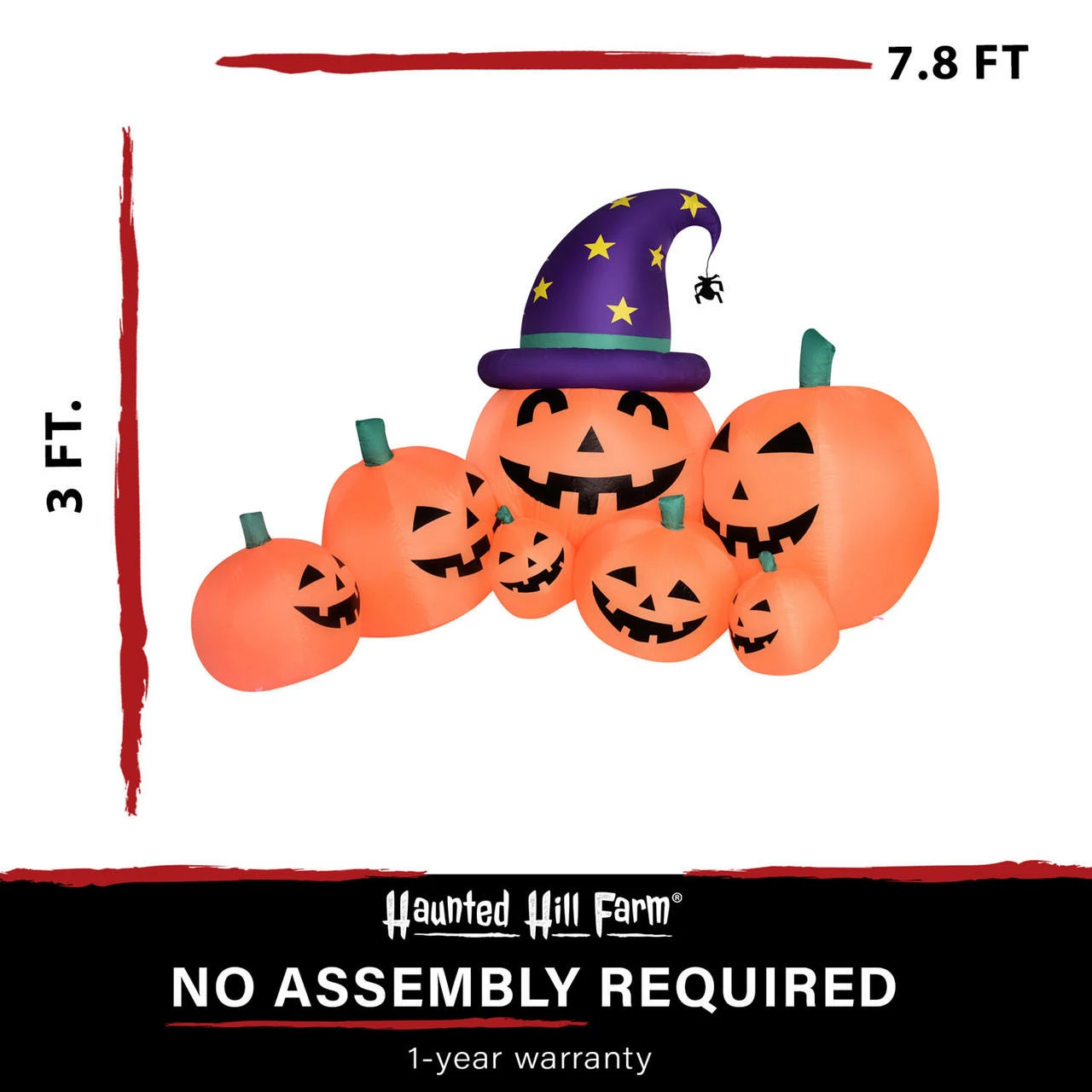 - 7.8-ft. wide Inflatable Pre-Lit Pumpkin Jack-O-Lantern Family by Haunted Hill Farm