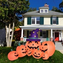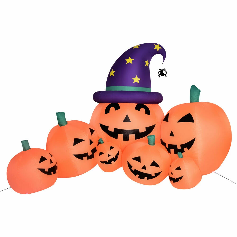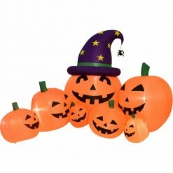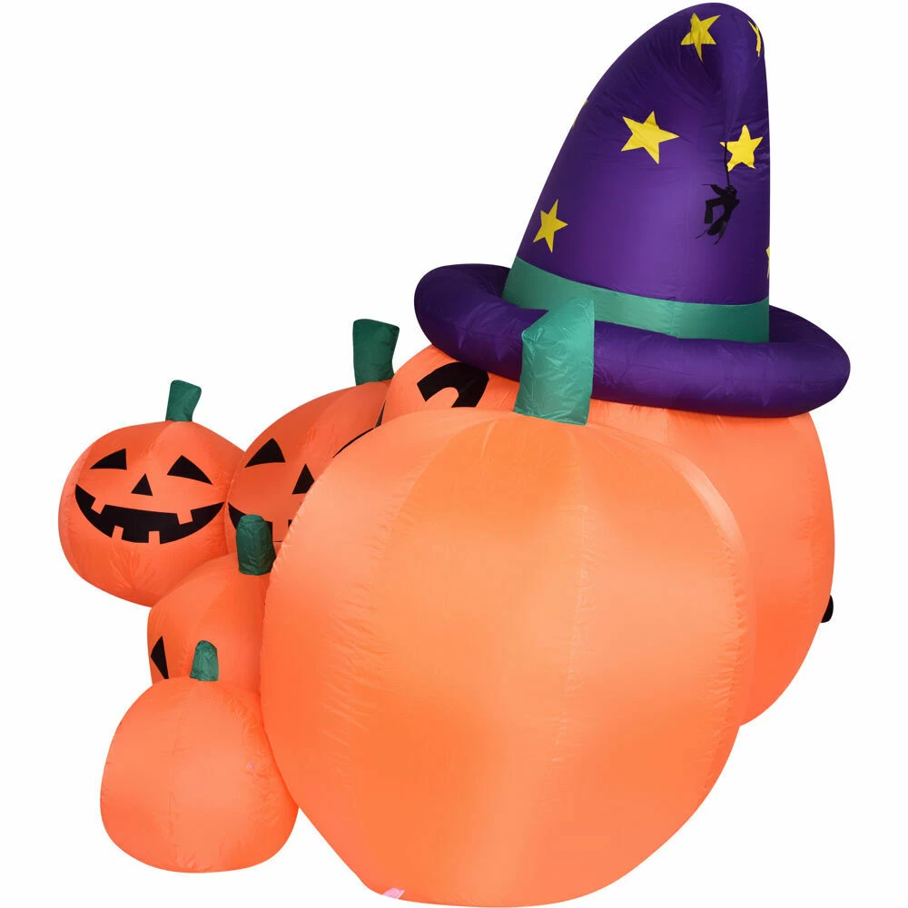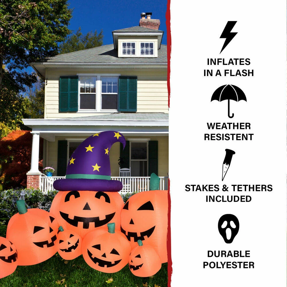 - 7.8-ft. wide Inflatable Pre-Lit Pumpkin Jack-O-Lantern Family by Haunted Hill Farm