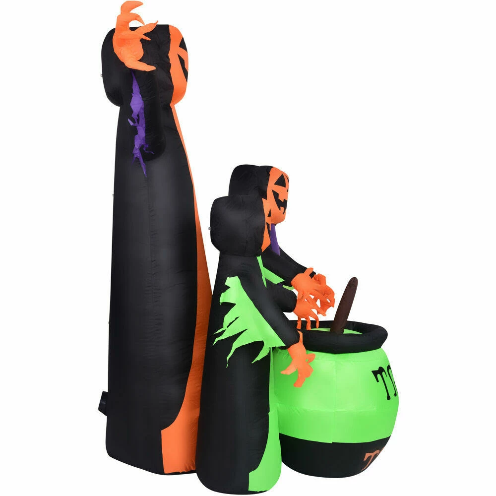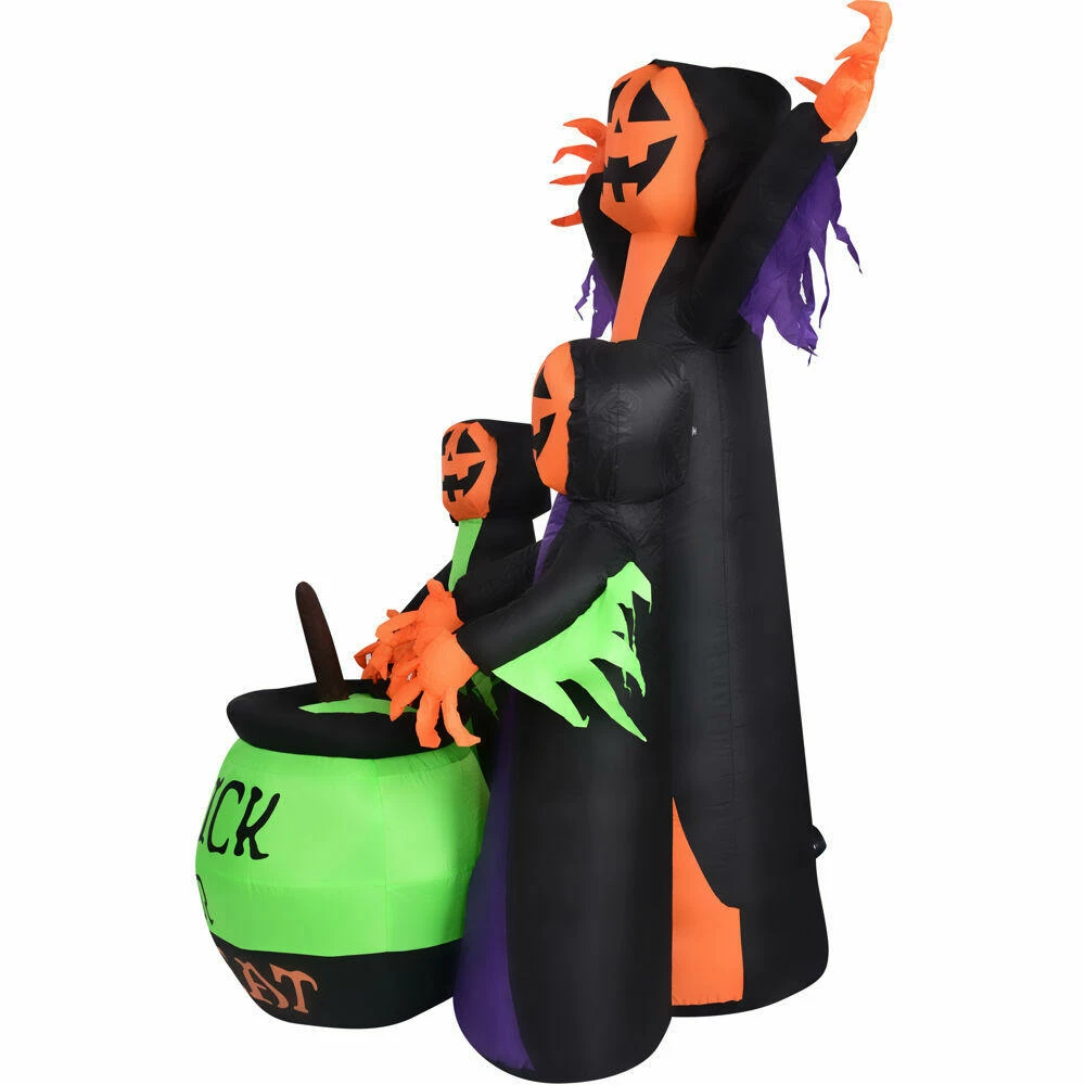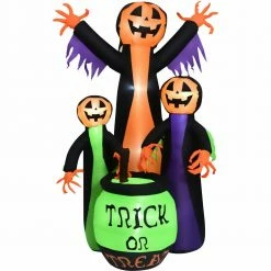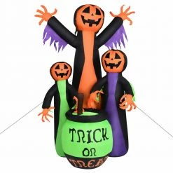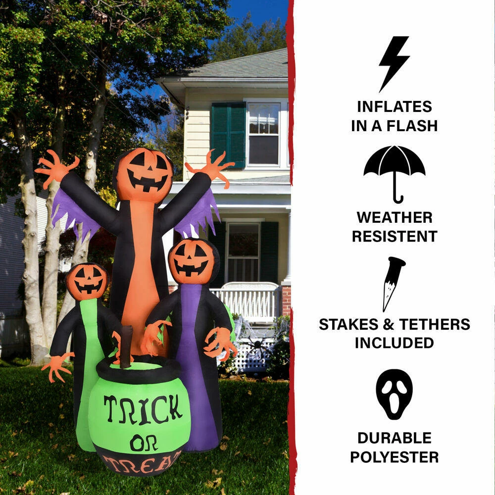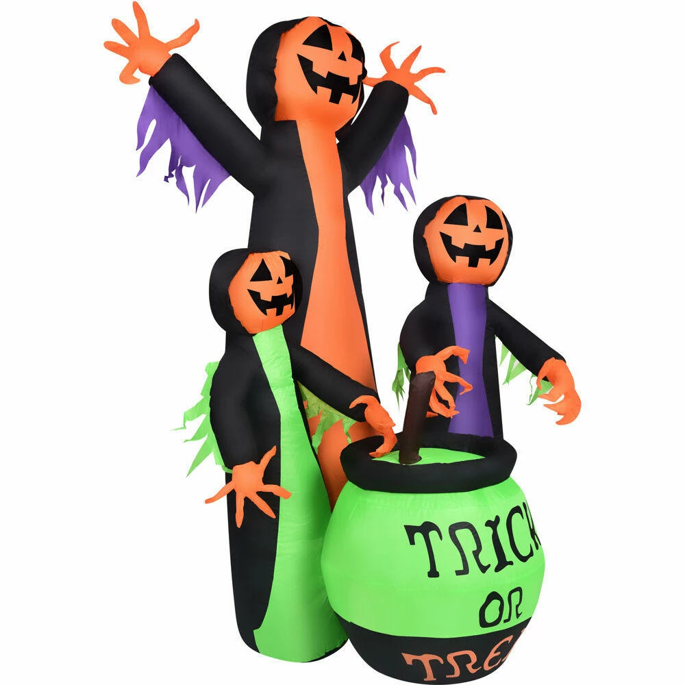 - 3-Ft. Inflatable Pre-Lit Brewing Pumpkin Jack-O-Lantern Trio with Cauldron