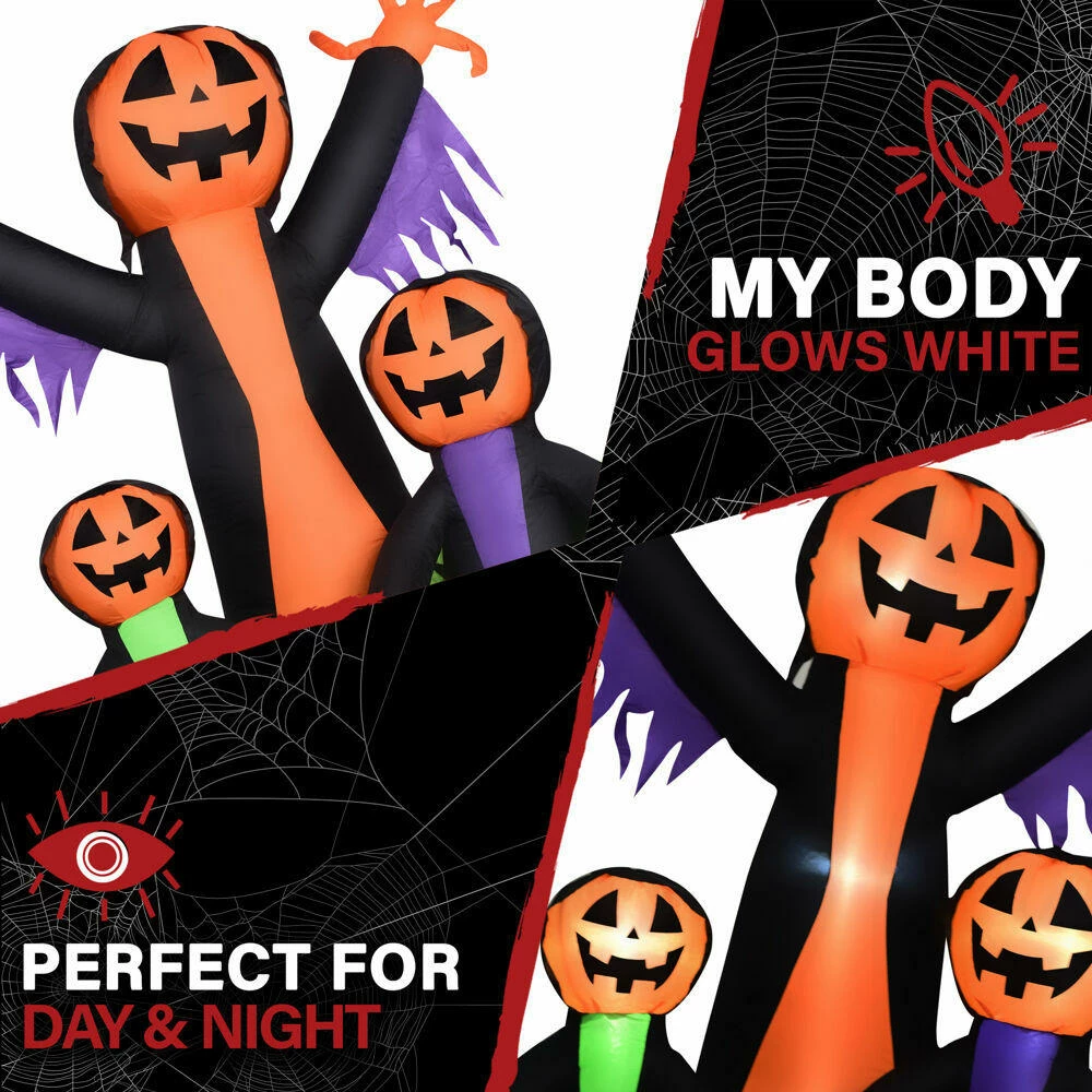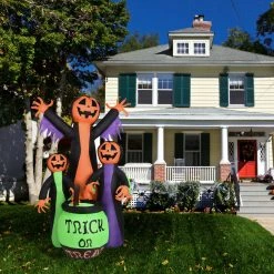Your neighbors will be in for a fright when they see your 7-ft. Inflatable Brewing Pumpkin Jack-O-Lantern Trio with Cauldron. This pre-lit inflatable is outfitted with seven internal white LED lights and will be the centerpiece of your own personal haunted house. It’s big enough to make the neighbors notice but still works in smaller yards or walkways. It’s the perfect trick to give your trick-or-treaters a scare without giving them nightmares. The treat is how quick and easy it is to set up with included ropes and lawn stakes for secure installation. Thanks to the internal lights and fan all you need to do is unpack it, plug it in, stake it down and you’re ready for some scary fun all Fall long. Created out of durable, weather resistant polyester, you won’t need to worry about holes. Your inflatable will last year after year and scare after scare. With Haunted Hill Farm, you’ll be the scariest house on the block!