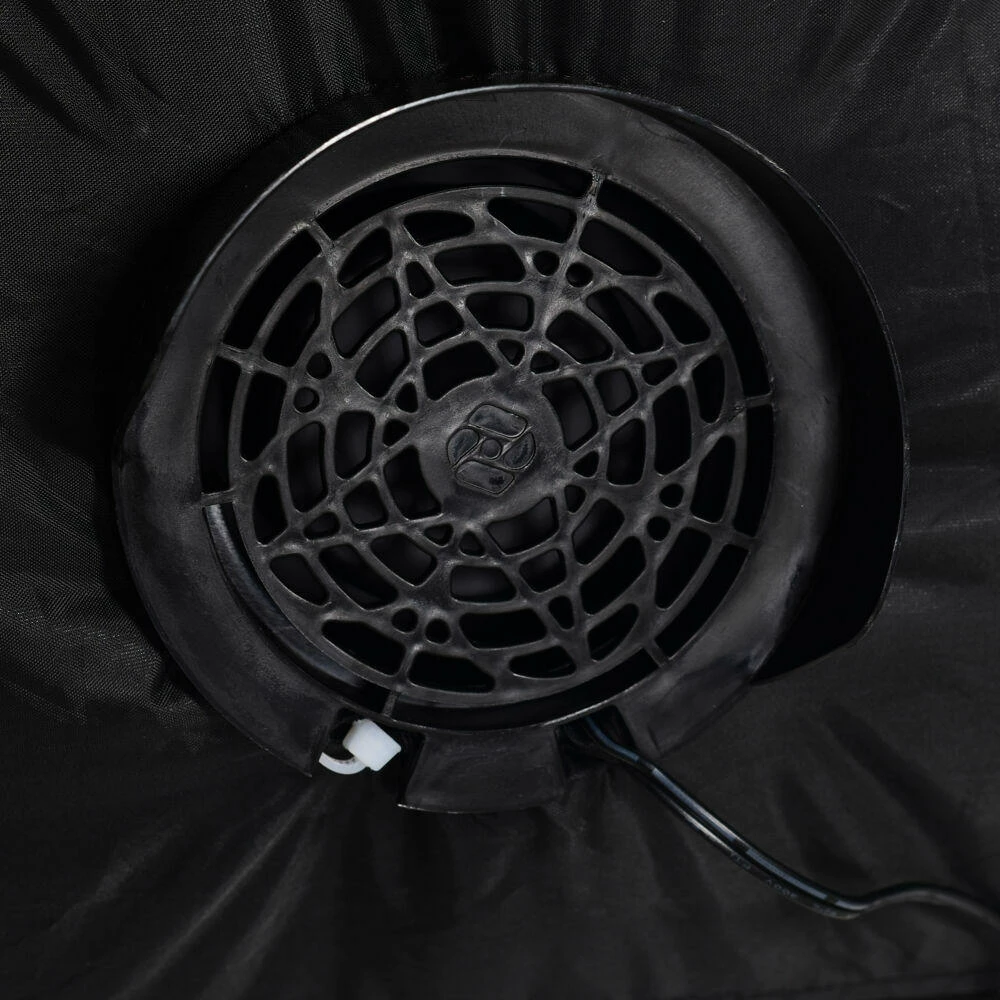 - Inflatable includes internal light, internal fan, 2 6-ft. ropes, 6 stakes, and sandbag