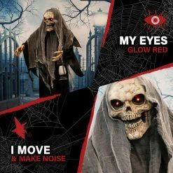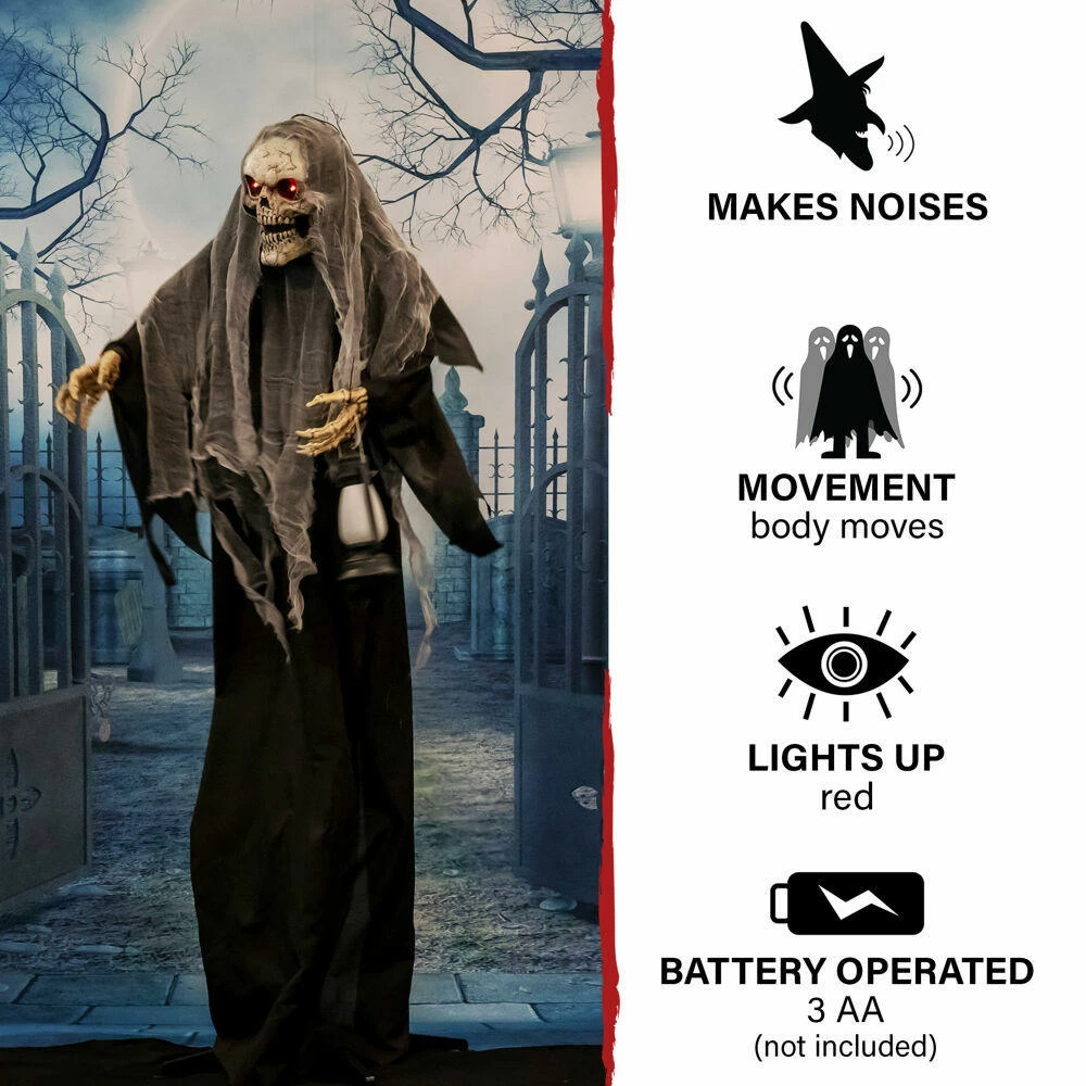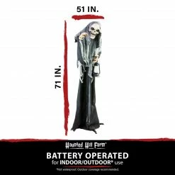 Be afraid! Be very afraid of the Reaper Collection from Haunted Hill Farm. Our blood-curdling reapers are just what you need to turn your home into the scariest house on the block. Lampa Solais, the gruesome reaper, lights the way to the underworld for all the freshly lost souls. Bump activated, Lampa Solais features animated body twisting, red glowing eyes, and monstrous noises to announce his arrival. Battery operated with posable arms, he includes a stand and an optional hanging loop at the top of his head so you can display him however you want. Bring Lampa Solaris home with you this Halloween to greet your trick-or-treaters with a scare that will surely give them nightmares.