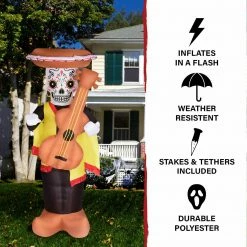 - 8-Ft. Inflatable Pre-Lit Day of the Dead Calaca with Guitar