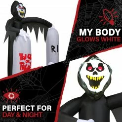 - 8-ft. Pre-Lit Inflatable Grim Reaper Tombstone Arch by Haunted Hill Farm