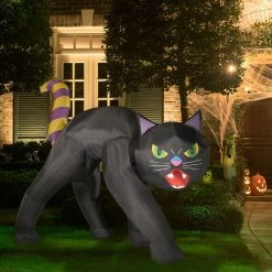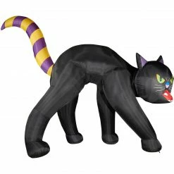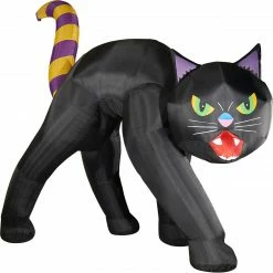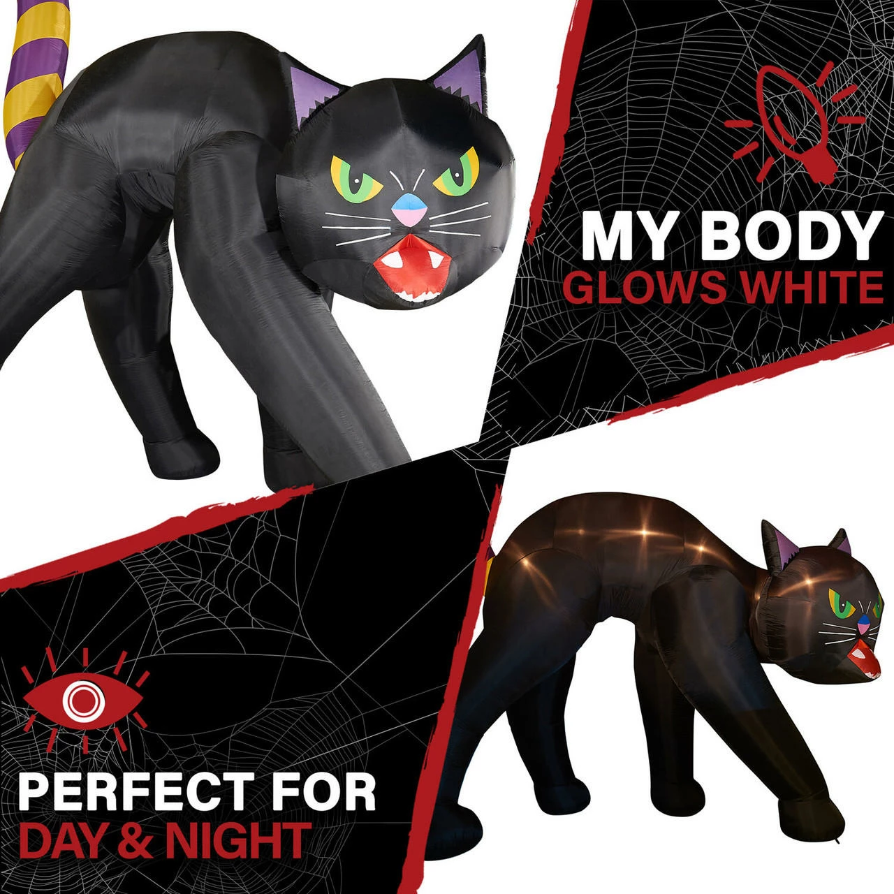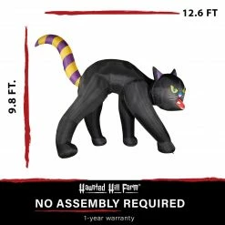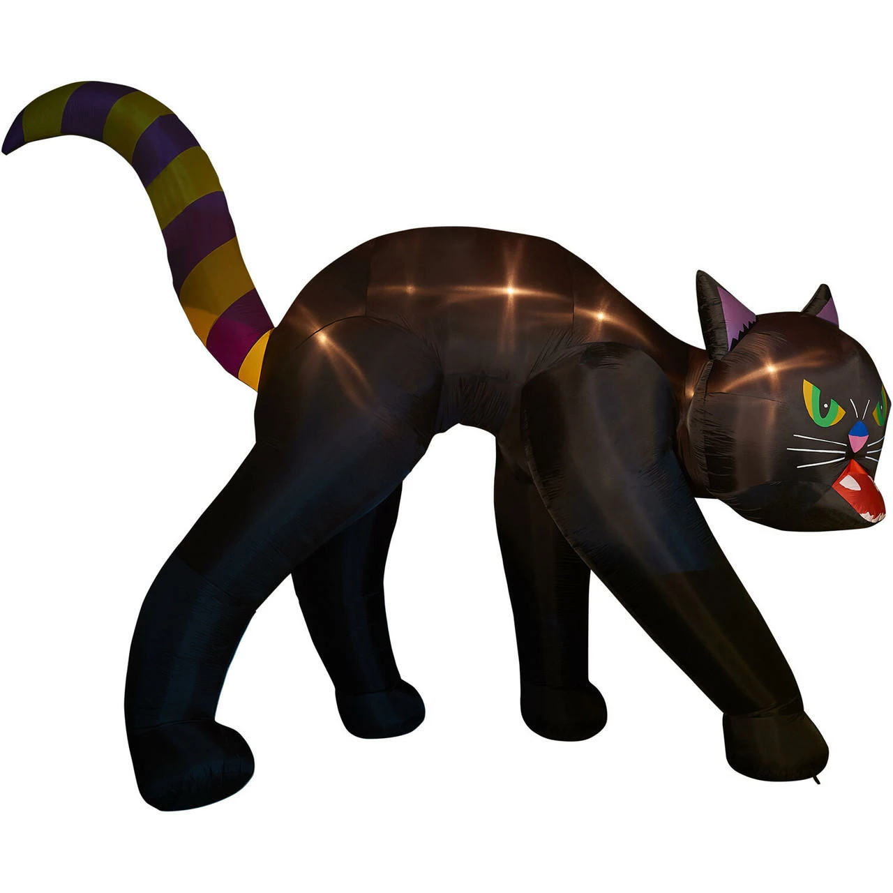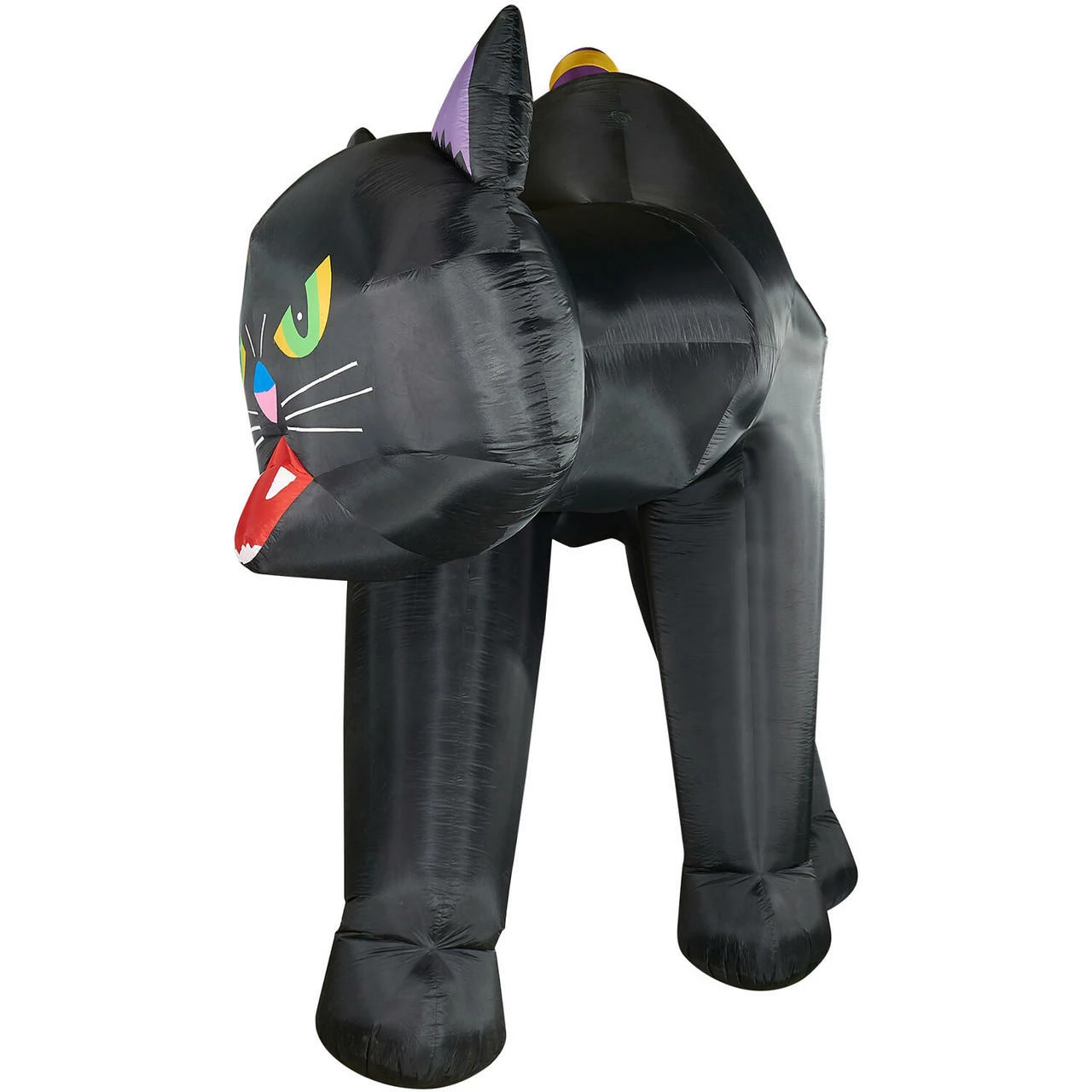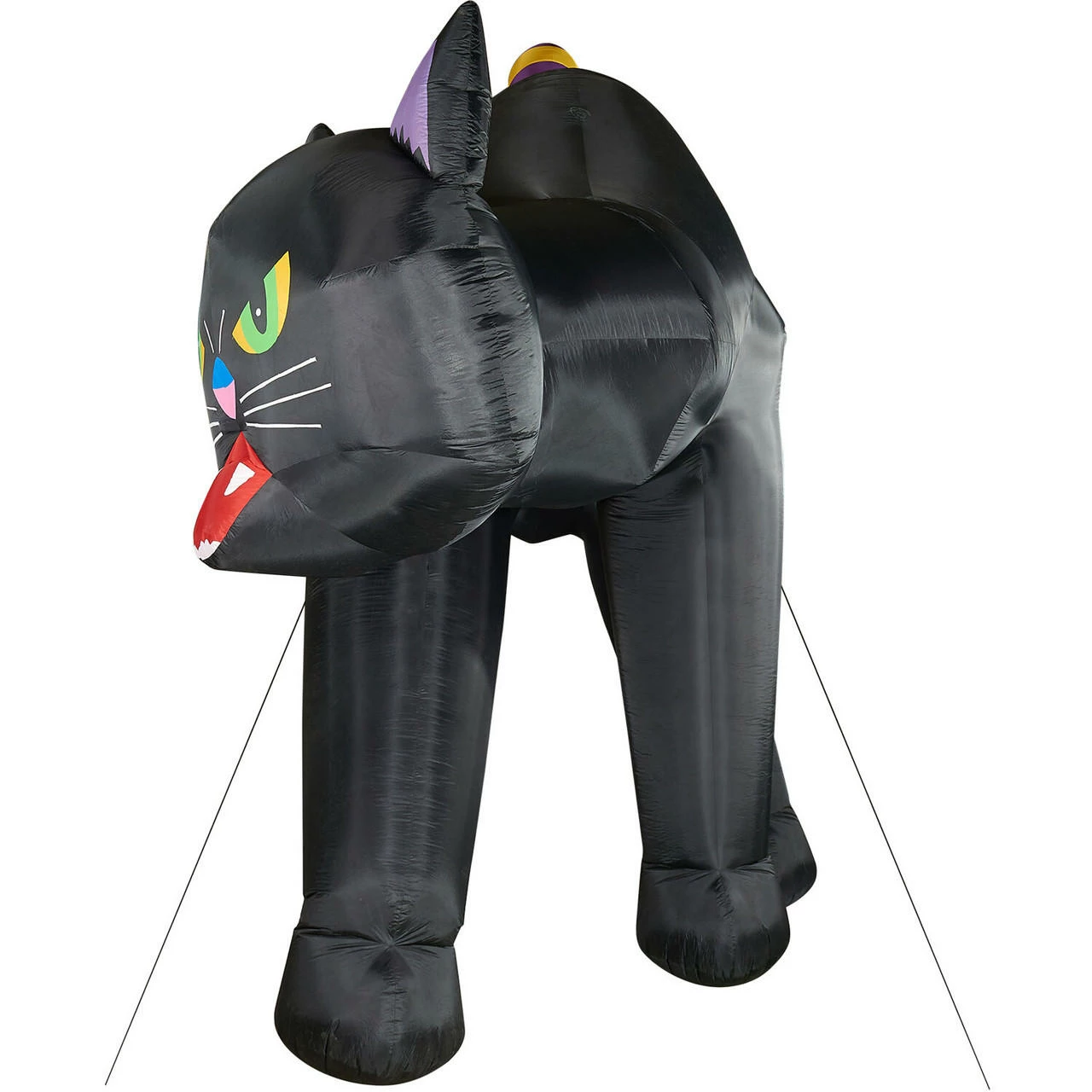 - 9.8-ft. tall inflatable black cat with green eyes by Haunted Hill Farm