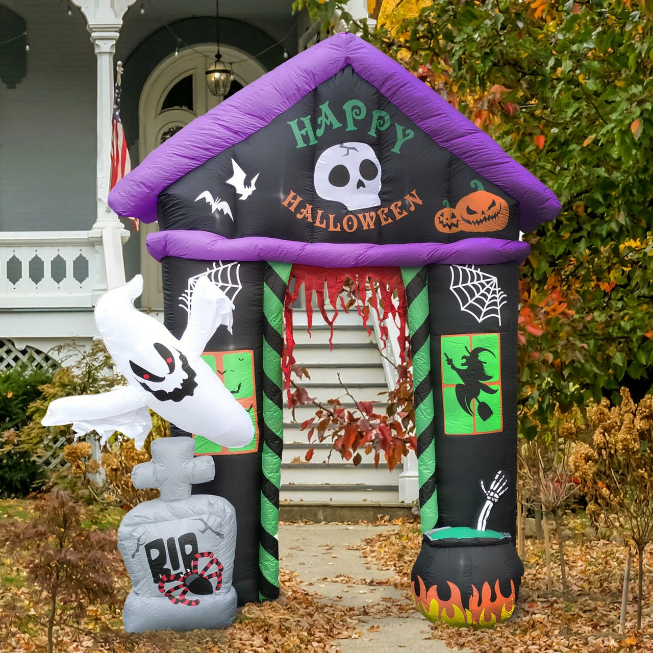 - 9-Ft. Inflatable Pre-Lit Arch with Ghost, Witch, and Tombstone