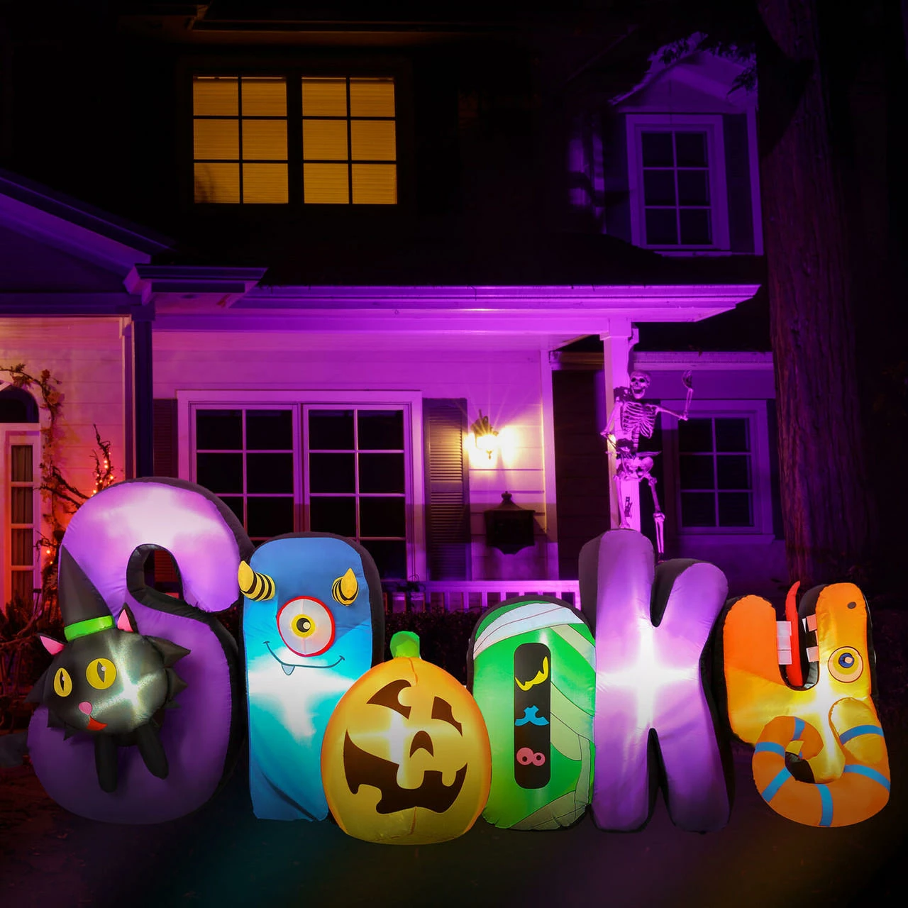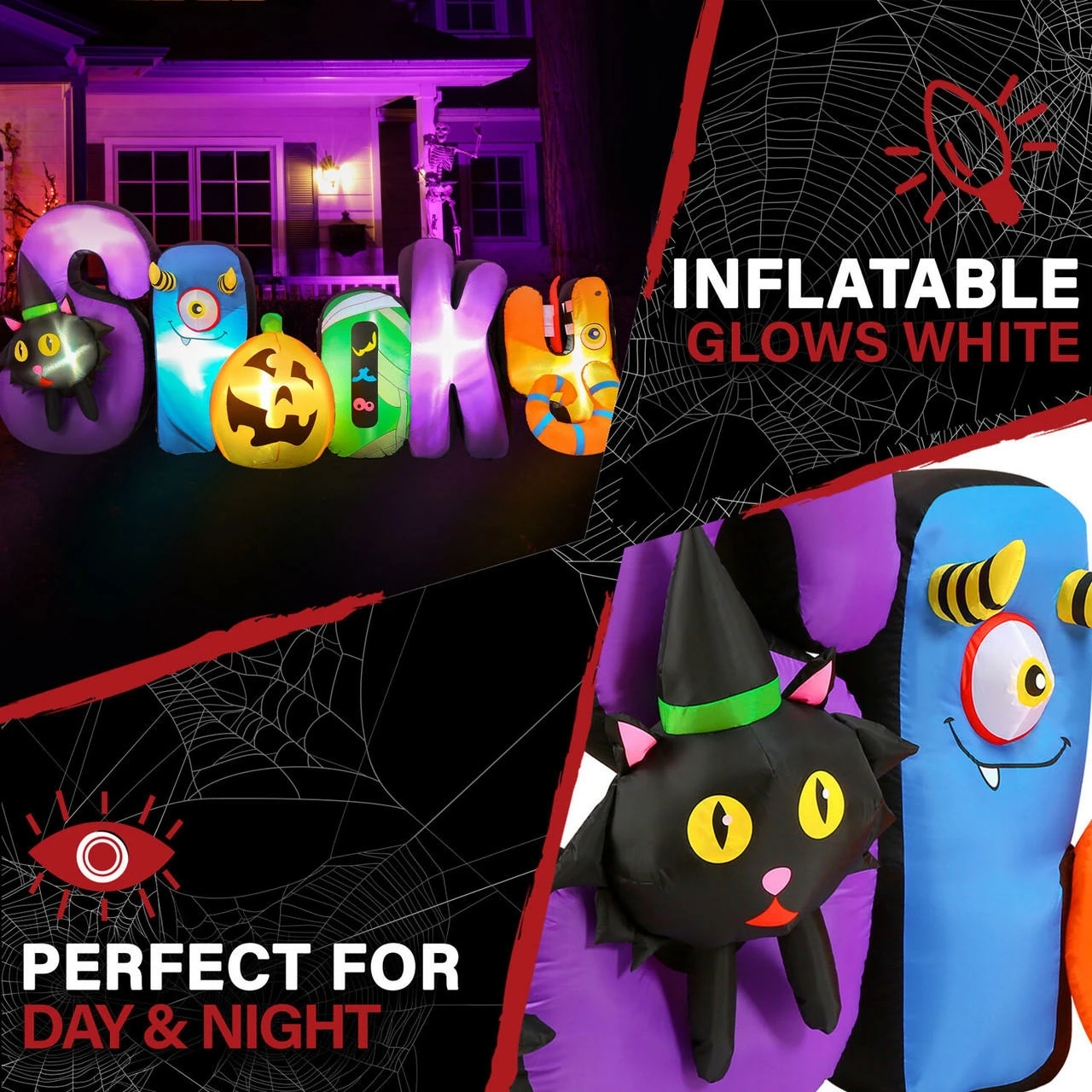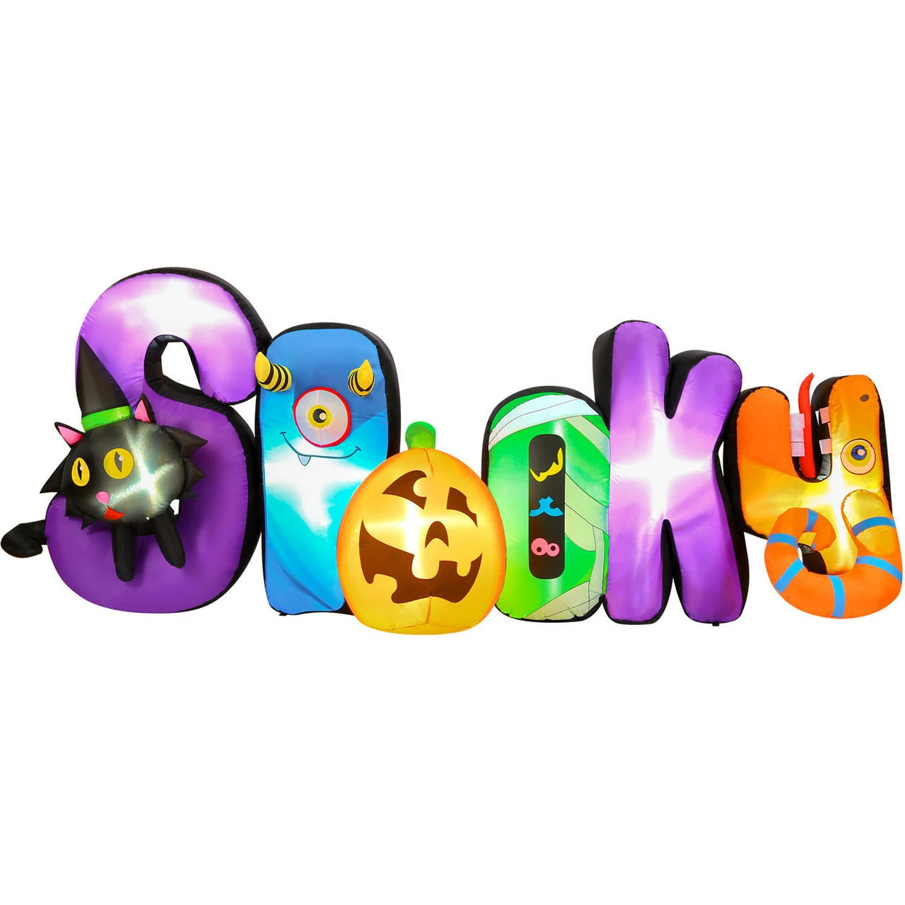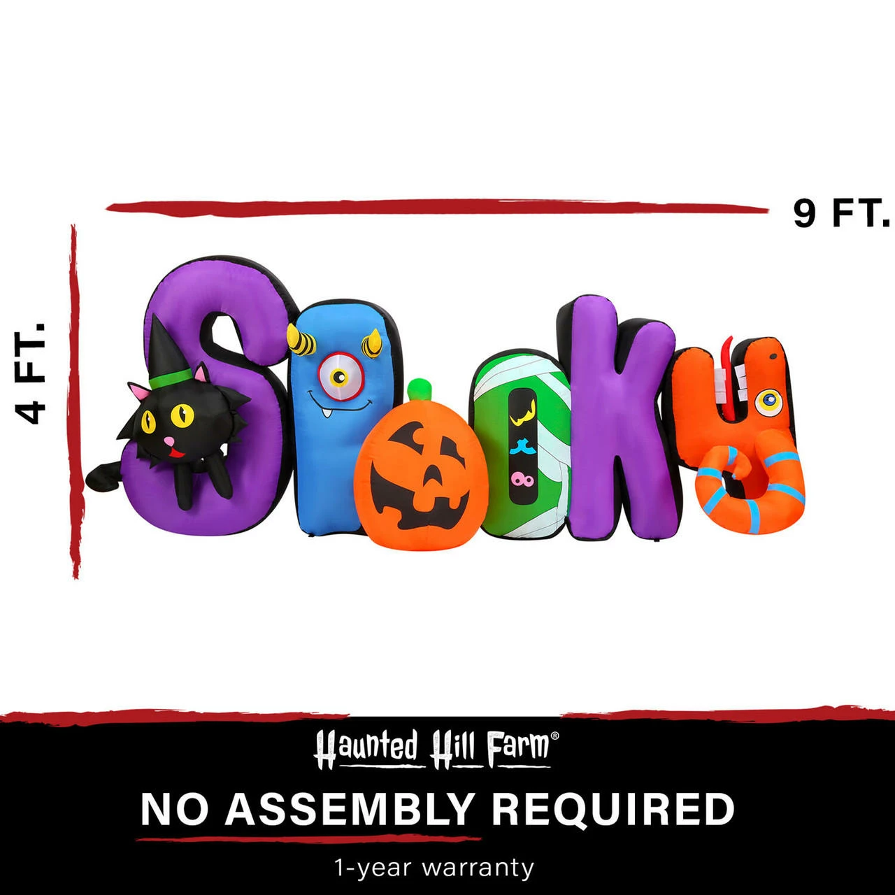 - 9-ft. wide Pre-Lit Inflatable Spooky Sign by Haunted Hill Farm