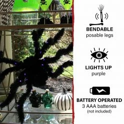 - Hanging giant hairy spider prop for indoor or covered outdoor display