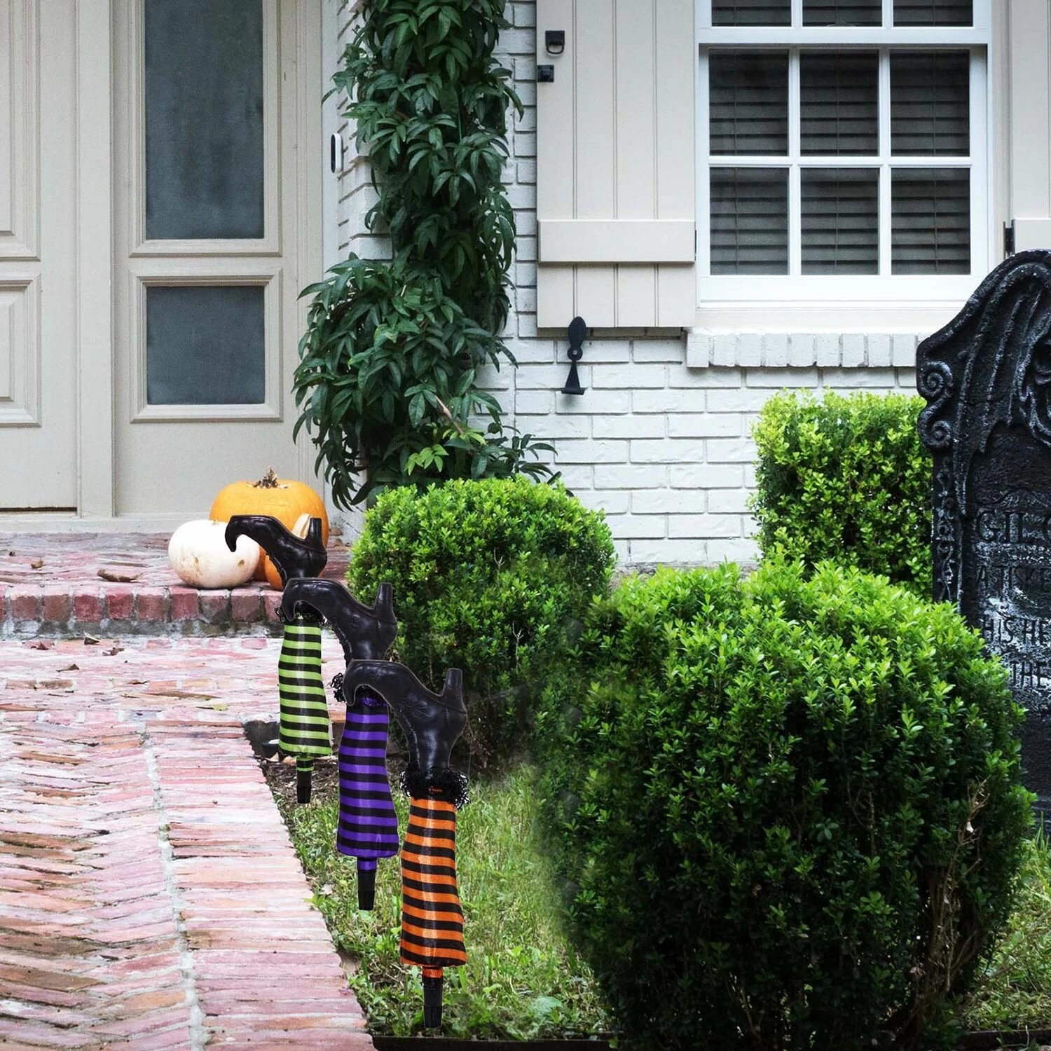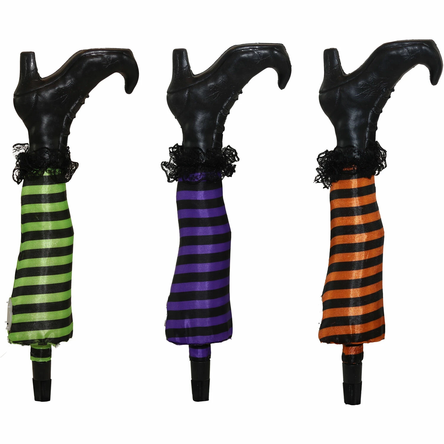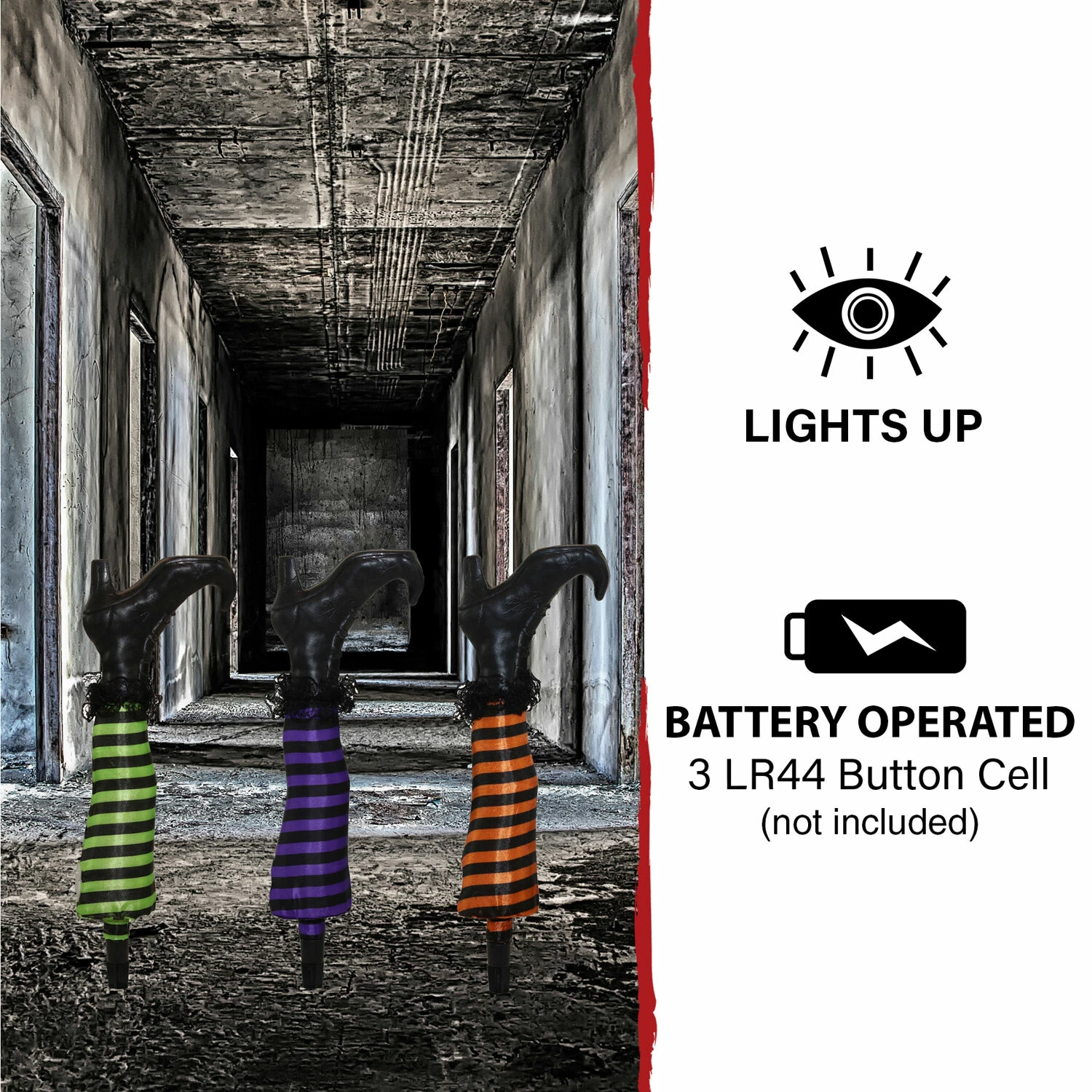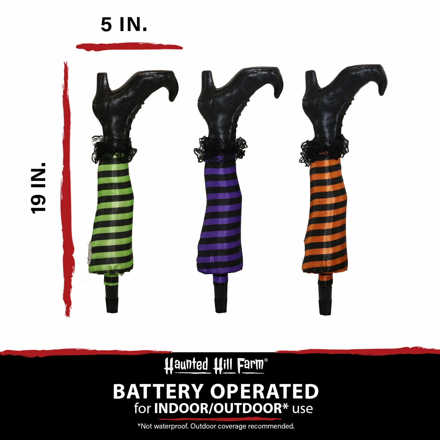 - Set of three 19-inch light-up witch leg stakes for outdoor display